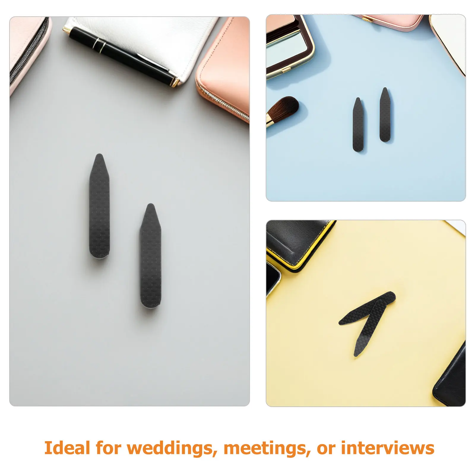 3ペア カーボンファイバー製 シャツカラーサポート メンズ用 ブラックシャツカラー用 脱着式ドレスシャツインサート 割れない尖ったボーン - TopDealBox