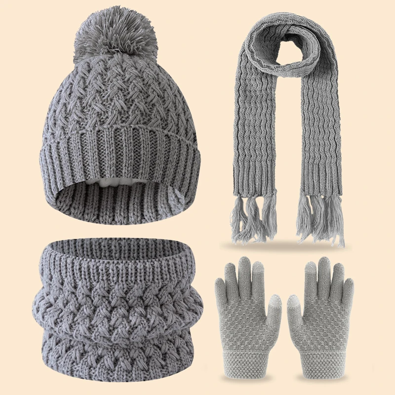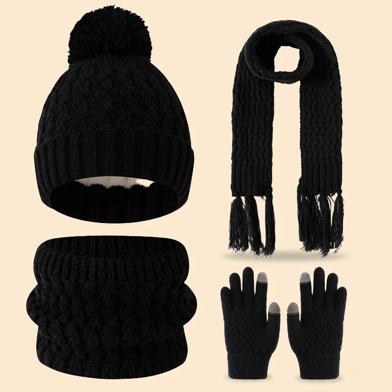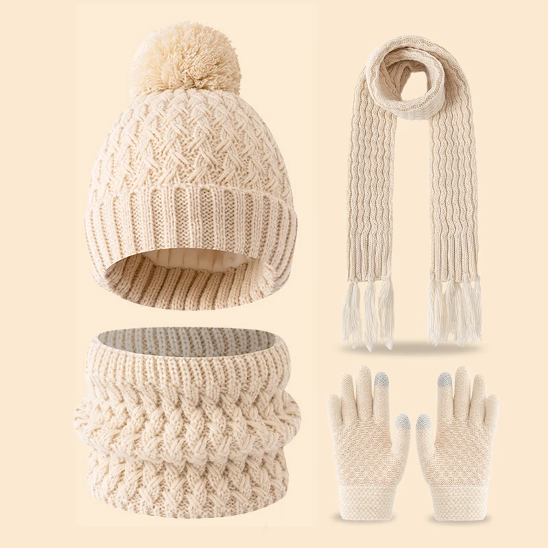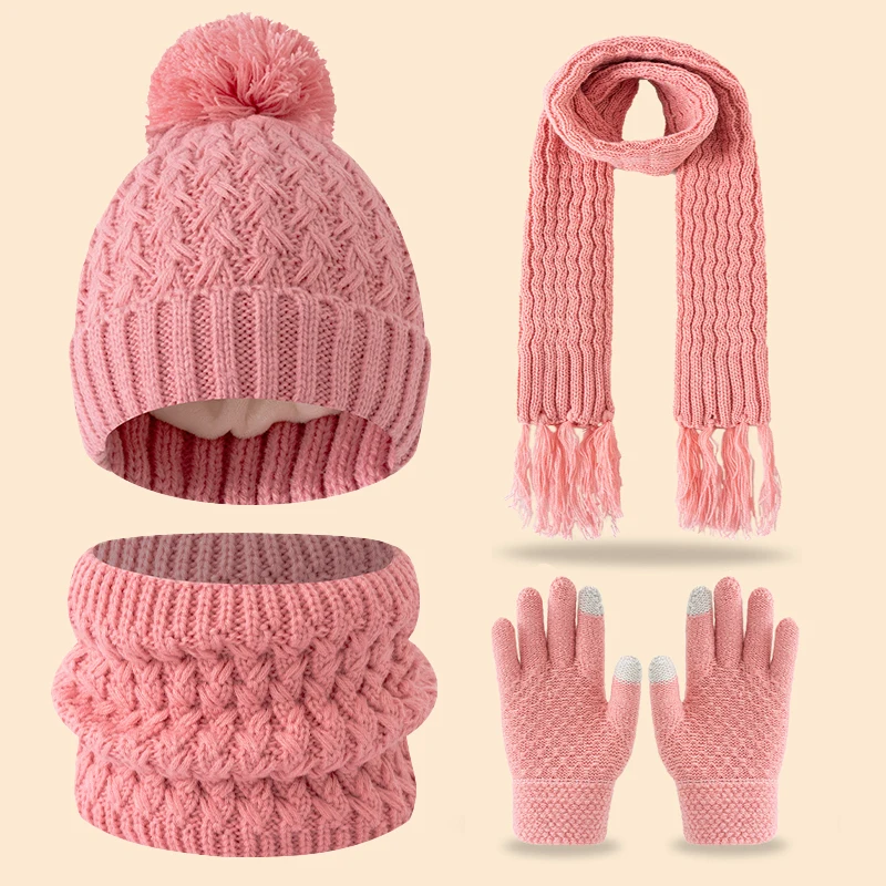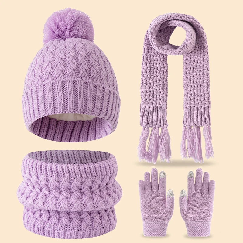 冬用のかわいいシングルボールフリースと厚手の3-14歳子供用タッセル付きスカーフ、帽子、手袋のセット - TopDealBox