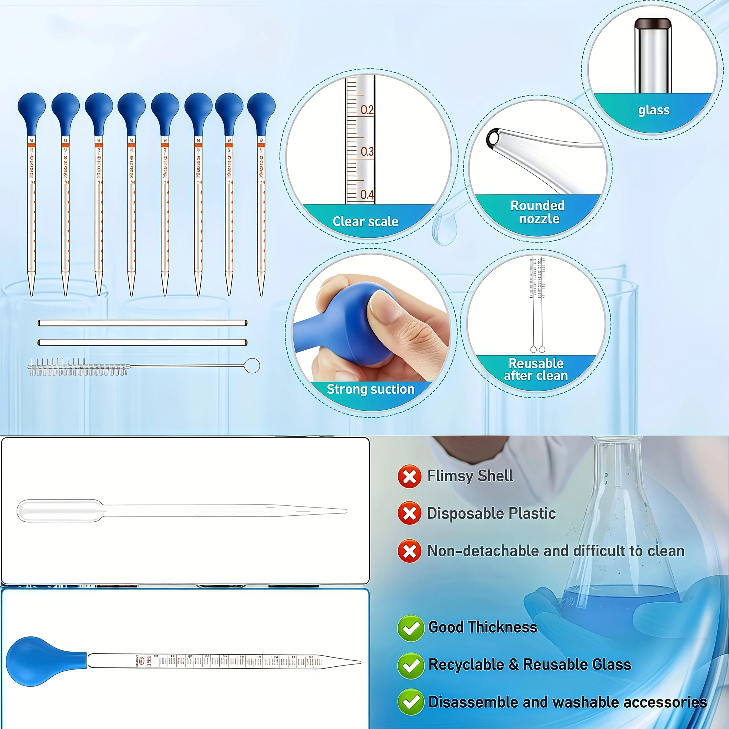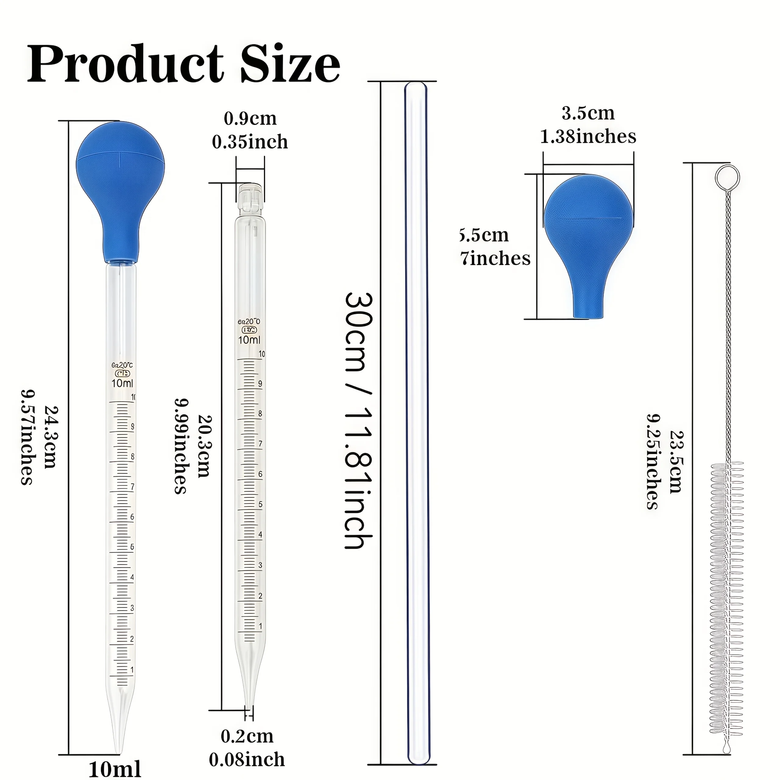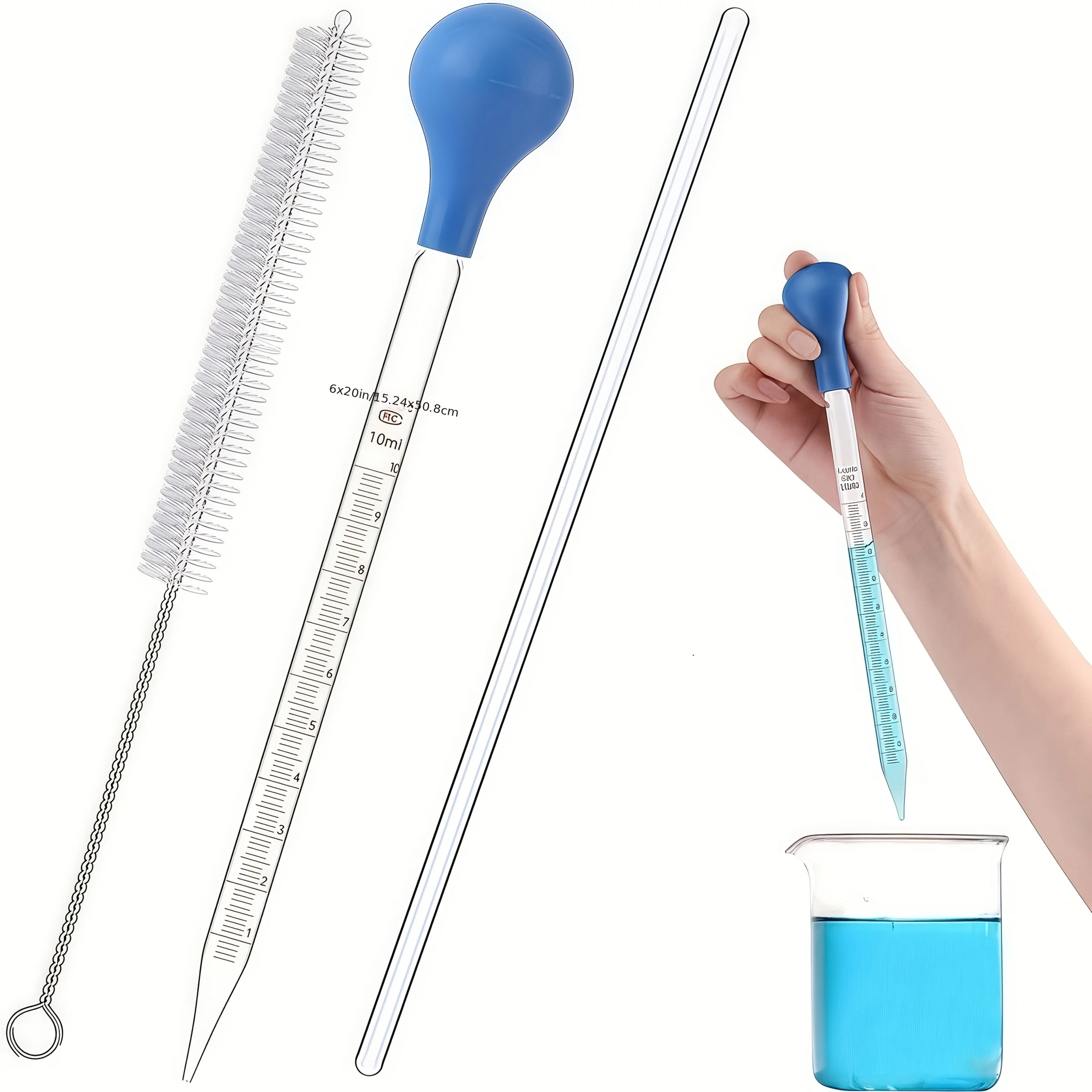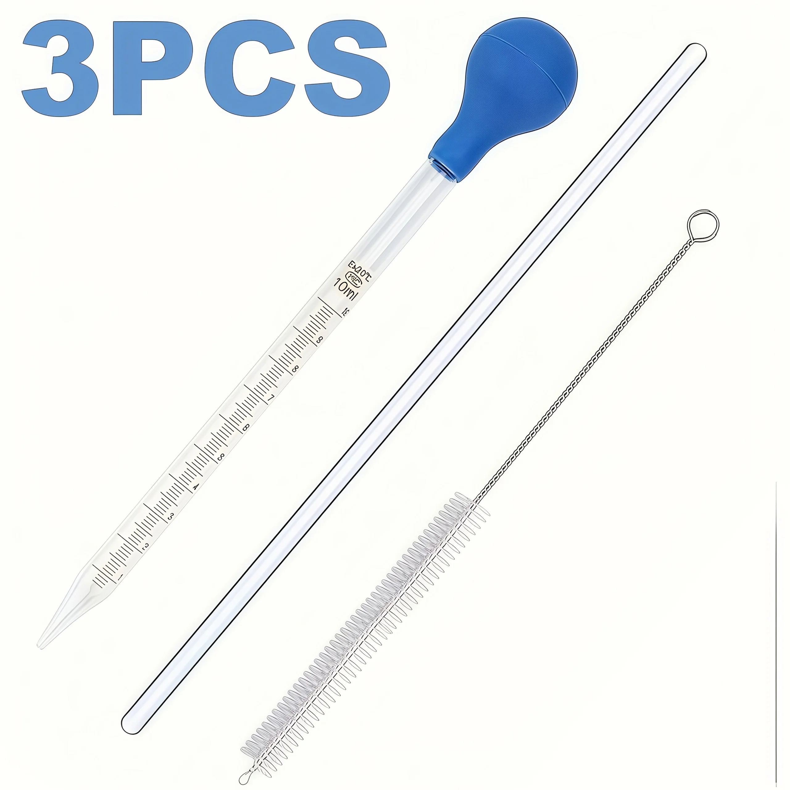 3 個/5 個のガラスピペットスポイト、撹拌棒とクリーニングブラシ付き 10 ml 液体スポイト、ゴム電球とクリーニングブラシ、
