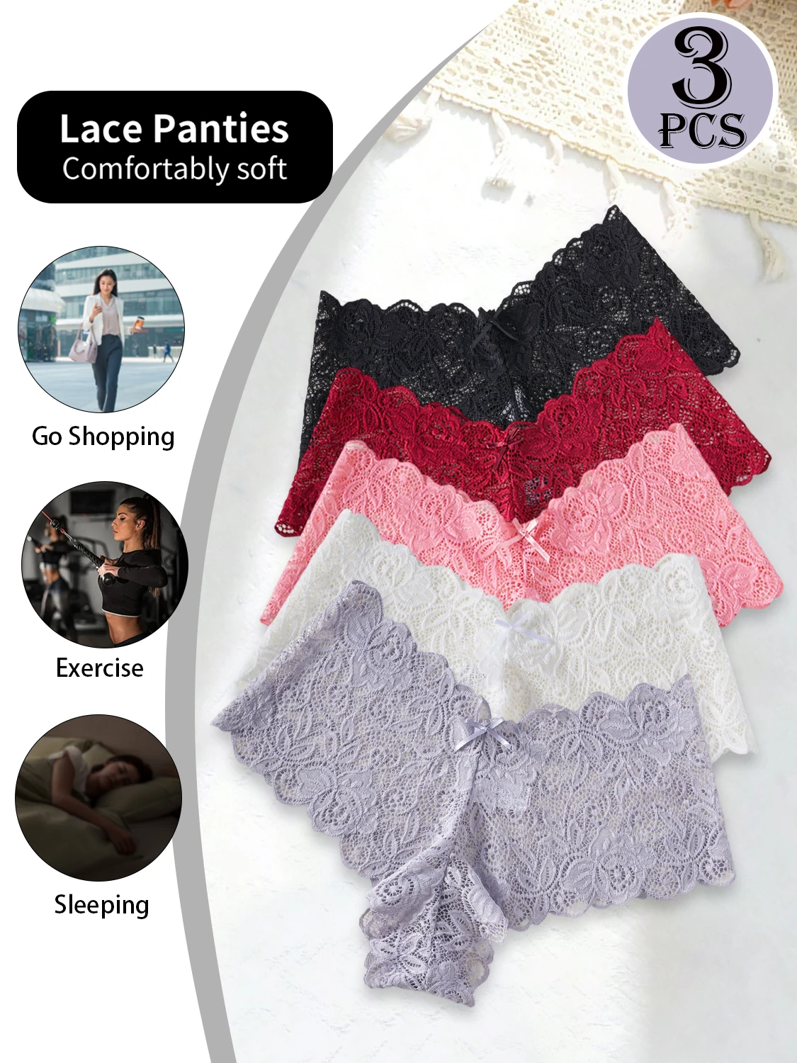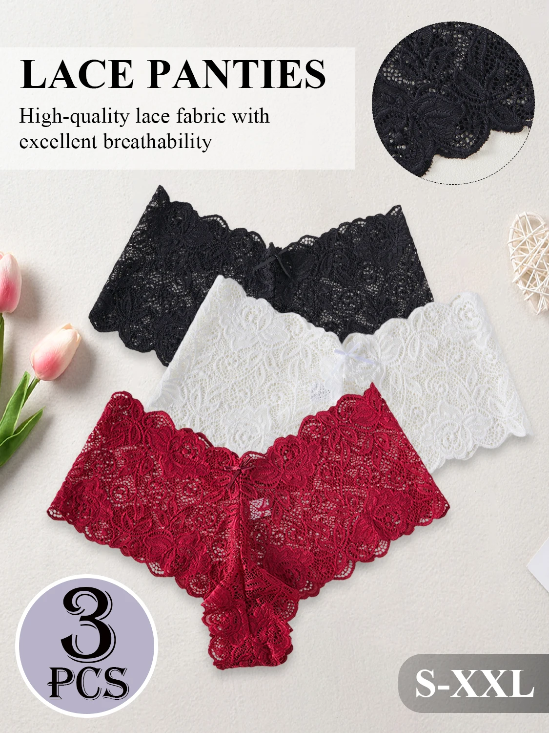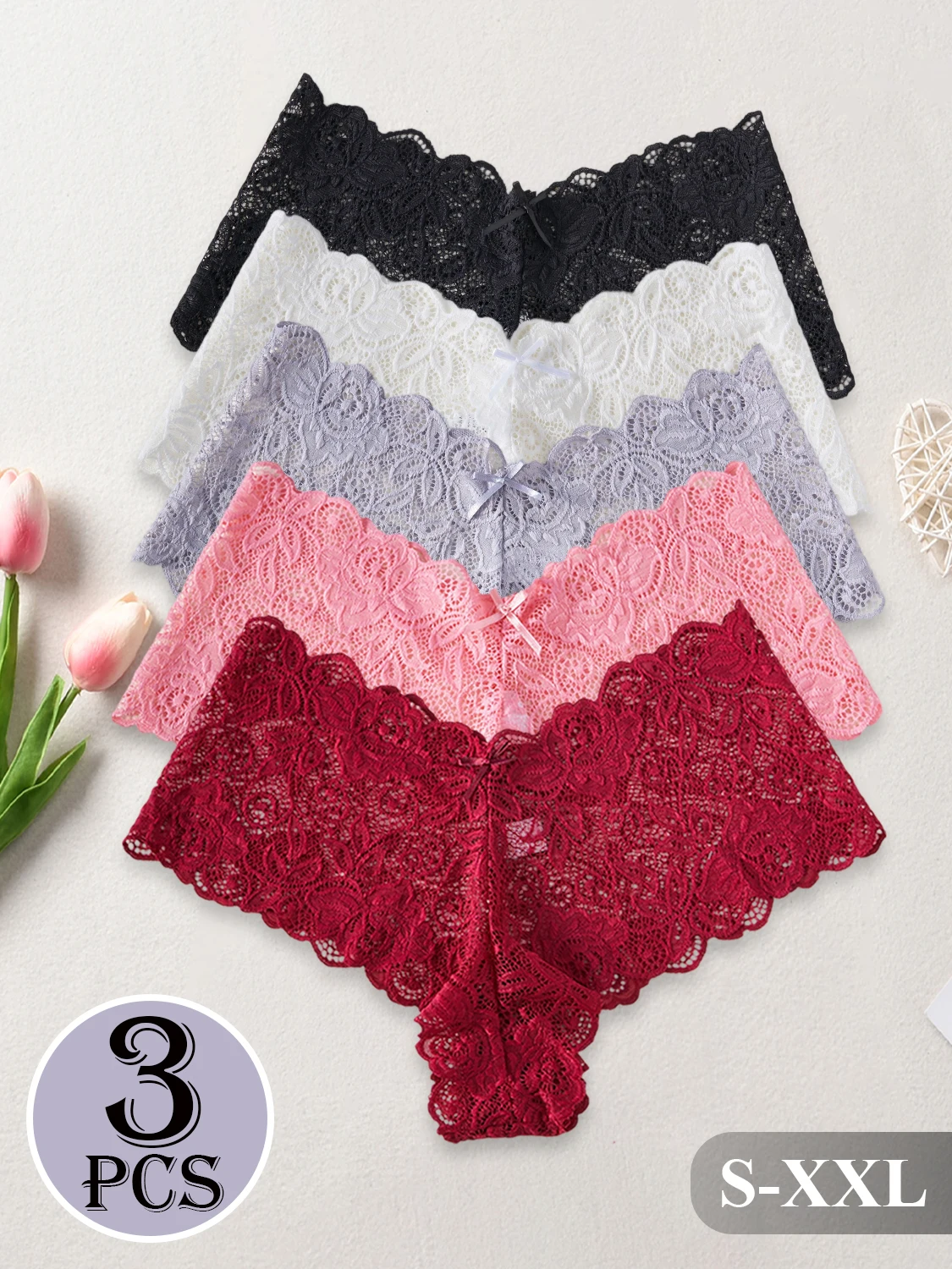 3 個のエレガントな女性の下着 V 字型ウエストレース花柄刺繍パンティー半薄手のセクシーなブリーフ無地ランジェリー