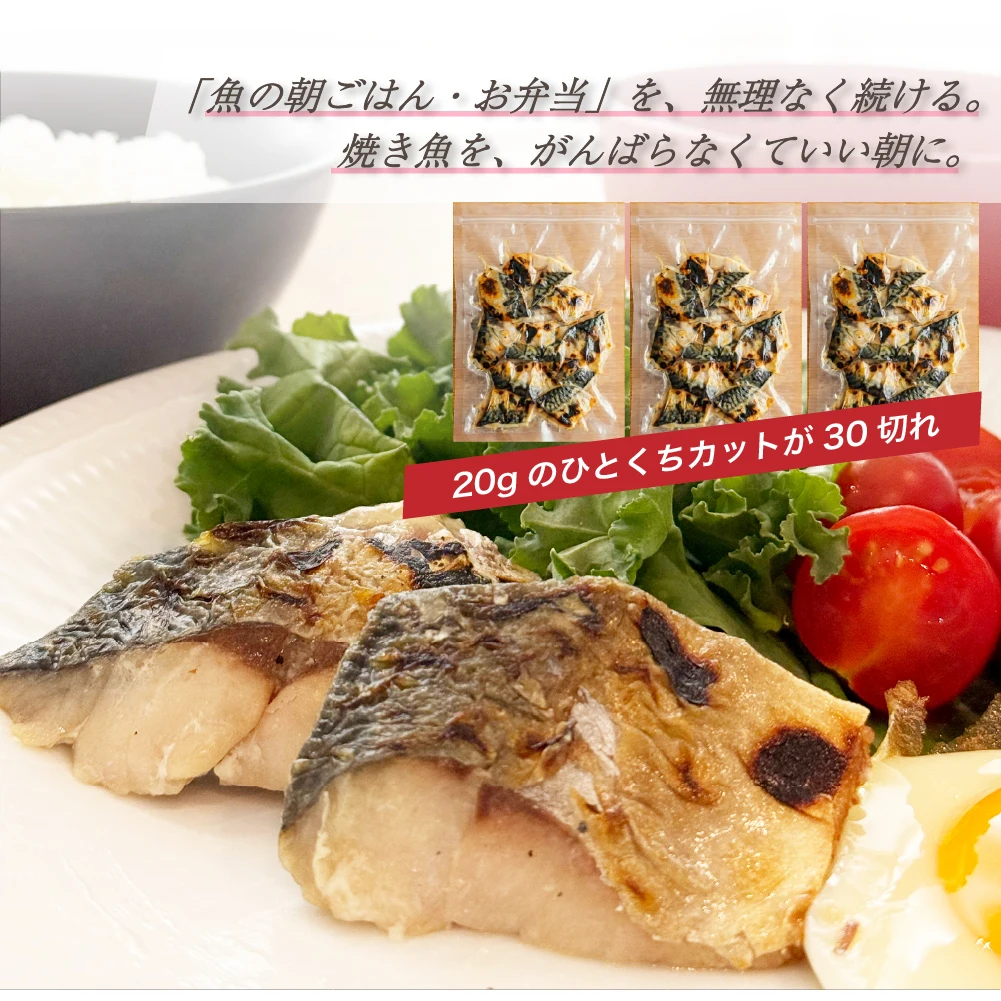 【焼かないサバ塩焼き】骨取りサバ塩焼き30切れ(20g×10切×3袋/合計600g)焼き済み・解凍するだけ/お弁当・朝食・常備おかずに - TopDealBox