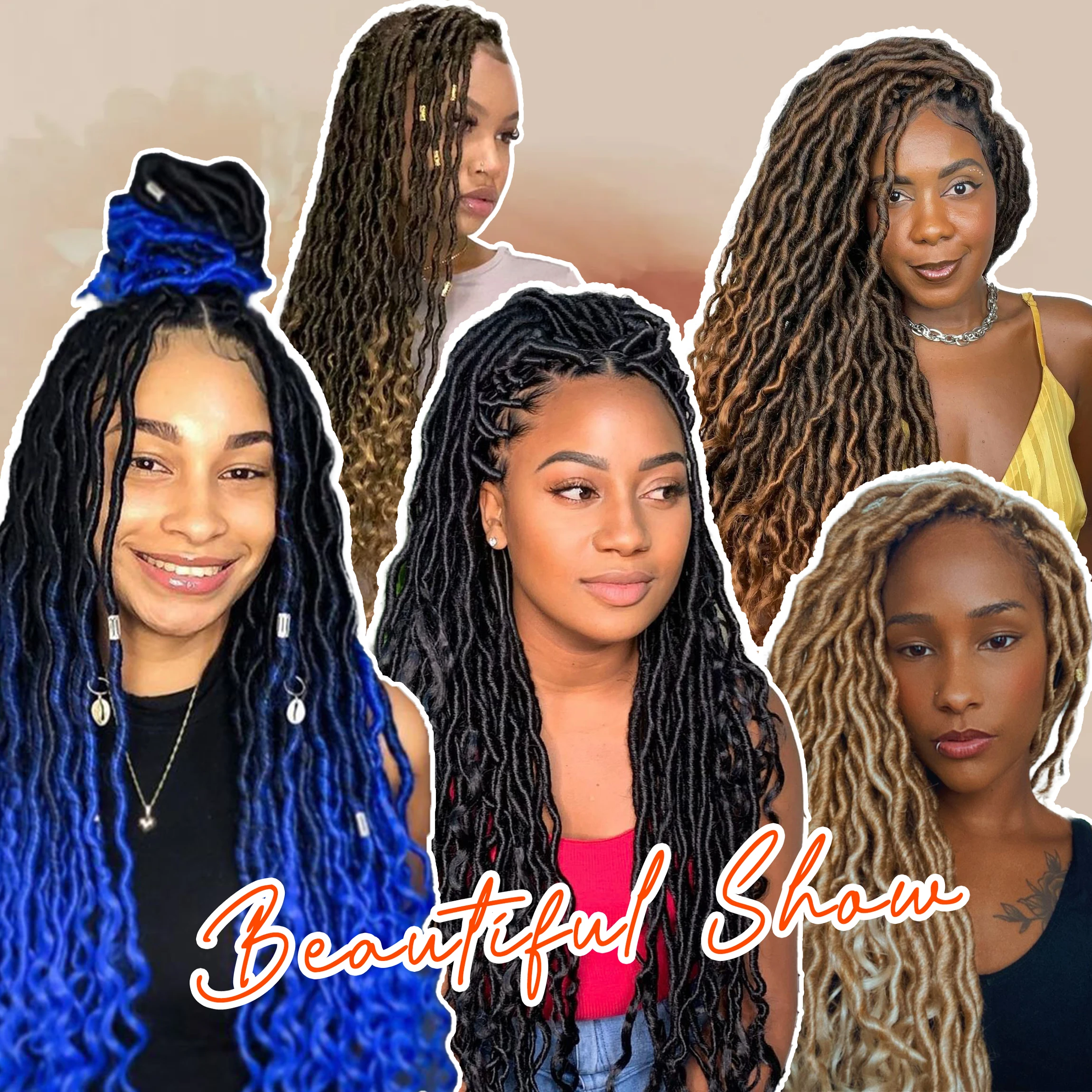 激安セール ニューロックス 合成クロシェヘアウィッグ 32インチ ロング ソフト プレループド ゴッデスロックス カールウェーブ ブレイズ ドレッドロックス ウィッグ - TopDealBox