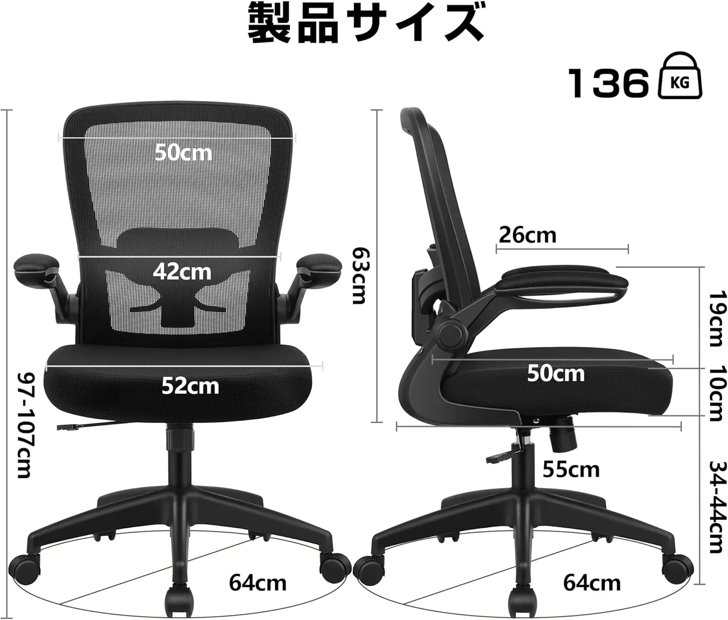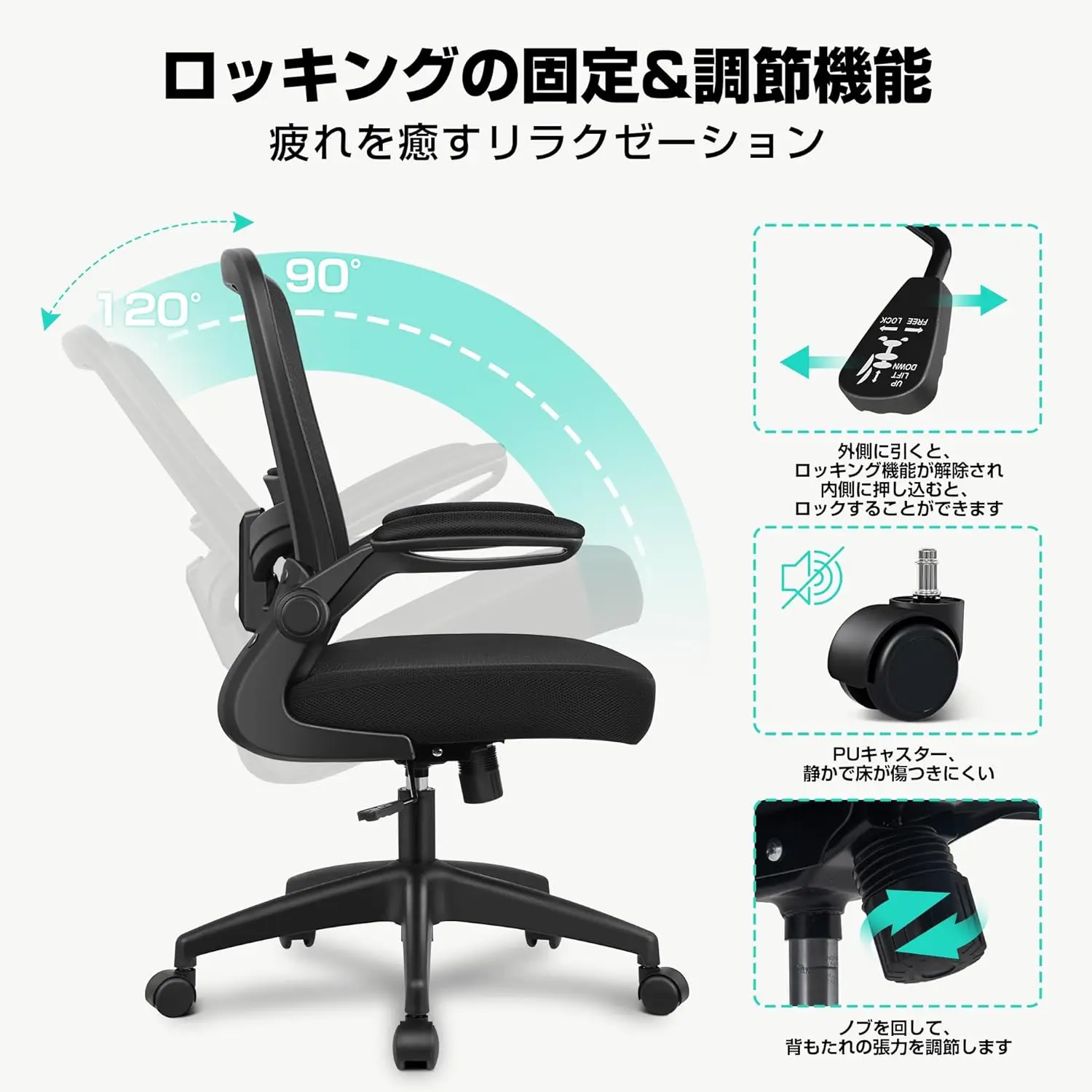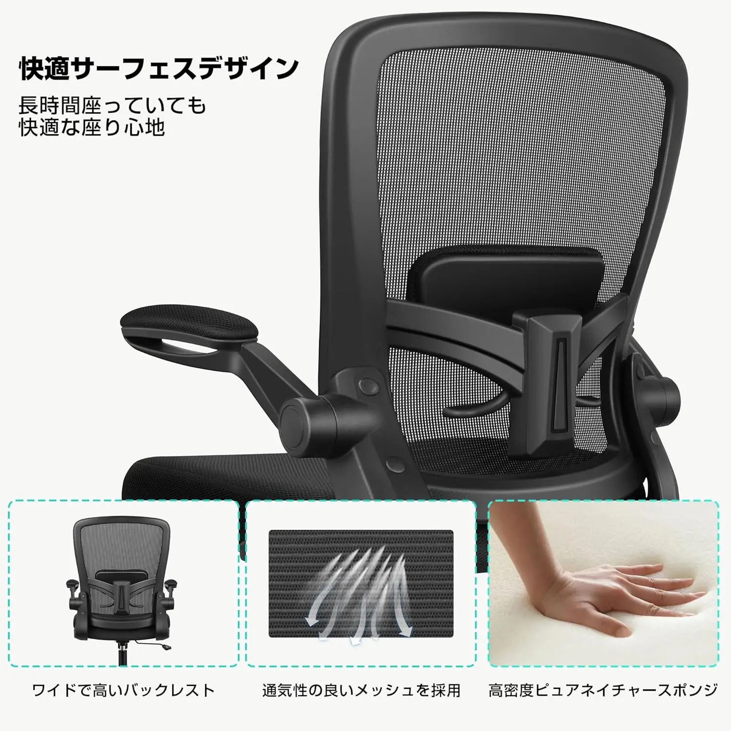 抗疲労オフィスチェアホームワークデスクチェアメッシュ人間工学に基づいたリフトアップアームレストランバーサポート360度回転 - TopDealBox