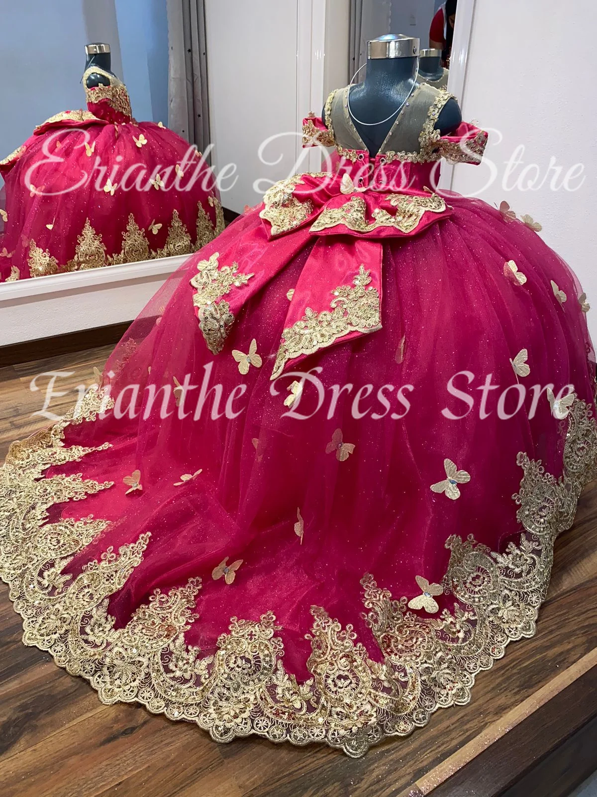 スパークリング 3D フラワーガールのドレス結婚式のレースのアップリケチュールふくらん子供の誕生日パーティー初聖体夜会ドレスカスタマイズ - TopDealBox