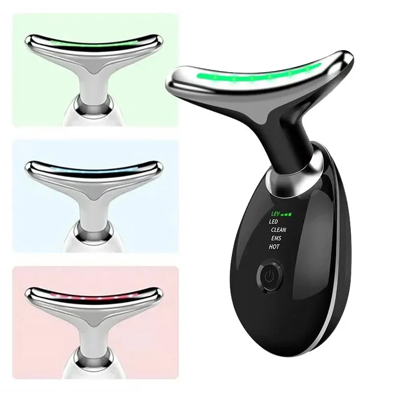 肌の引き締めのための電気ネックマッサージャー,3つの照明モード,LED美容機器,白 - TopDealBox