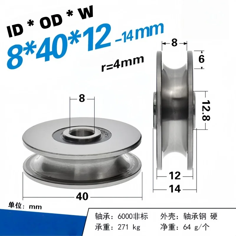 4 個 8x40x12mm 溝 U 溝ベアリングプーリーローラーガイドホイール 1 センチメートル直径スチールワイヤーロープ 10 ミリメートルトラック - TopDealBox