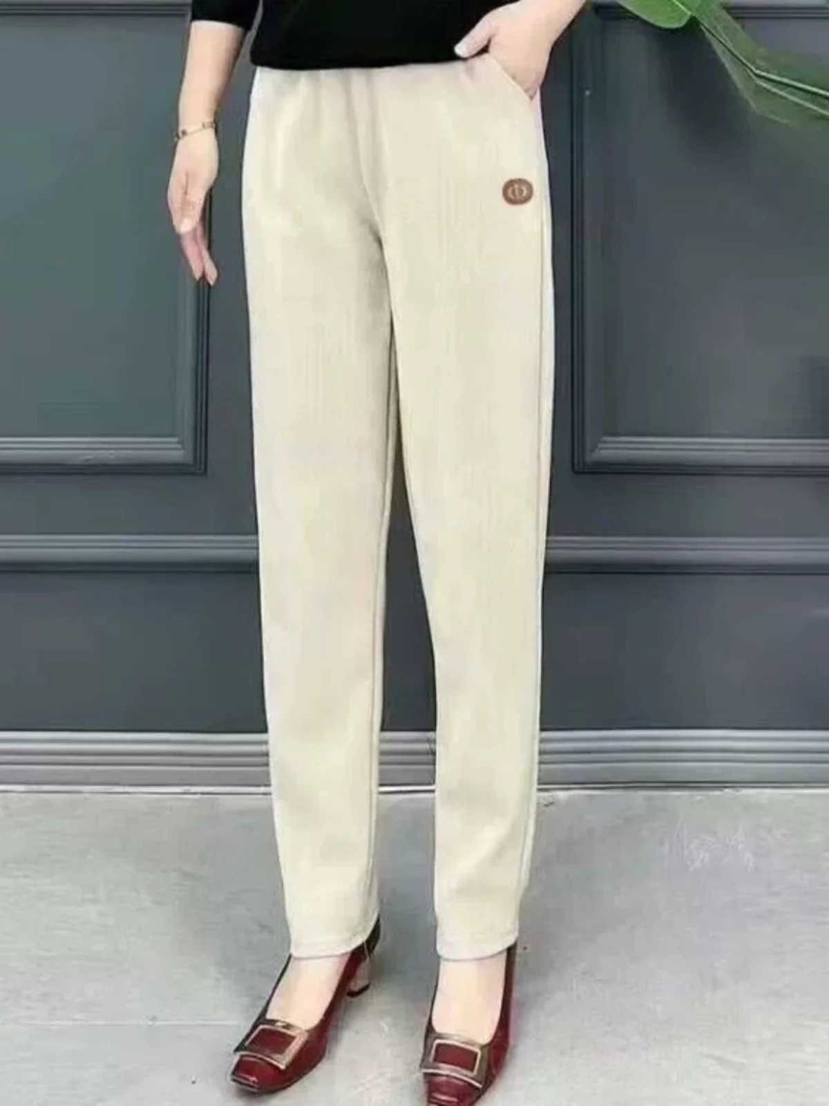 肥厚フリース裏地ハーレムパンツママスタイル冬のカジュアルパンツ女性のための 40 歳以上ファッションルーズフィットズボン - TopDealBox