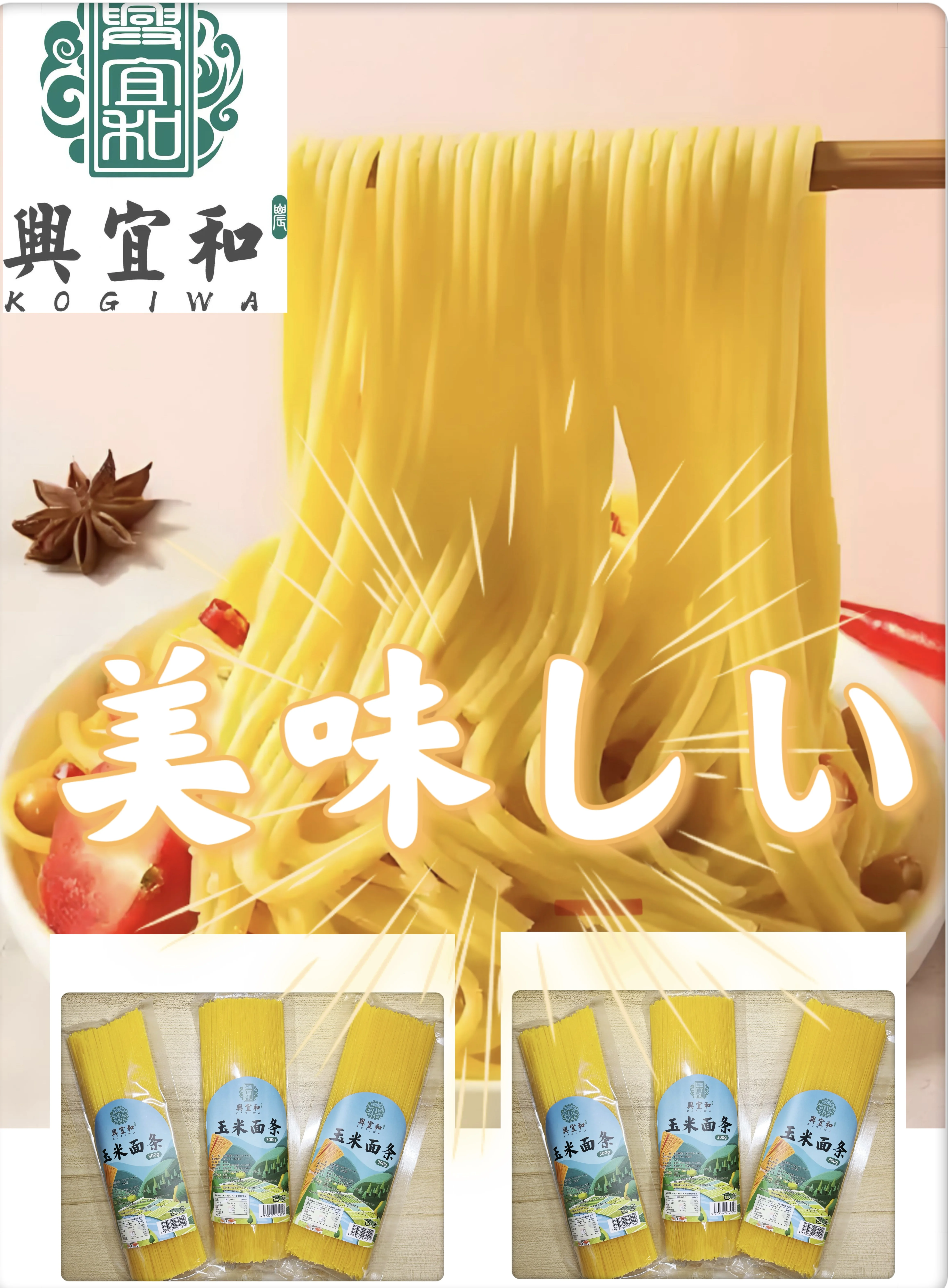 【40袋セット】【興宜和】吉林トウモロコシ麺 低脂・低カロリー ダイエット食品 朝食・代用食 軽断食主食 栄養豊富 300g/袋*40 - TopDealBox