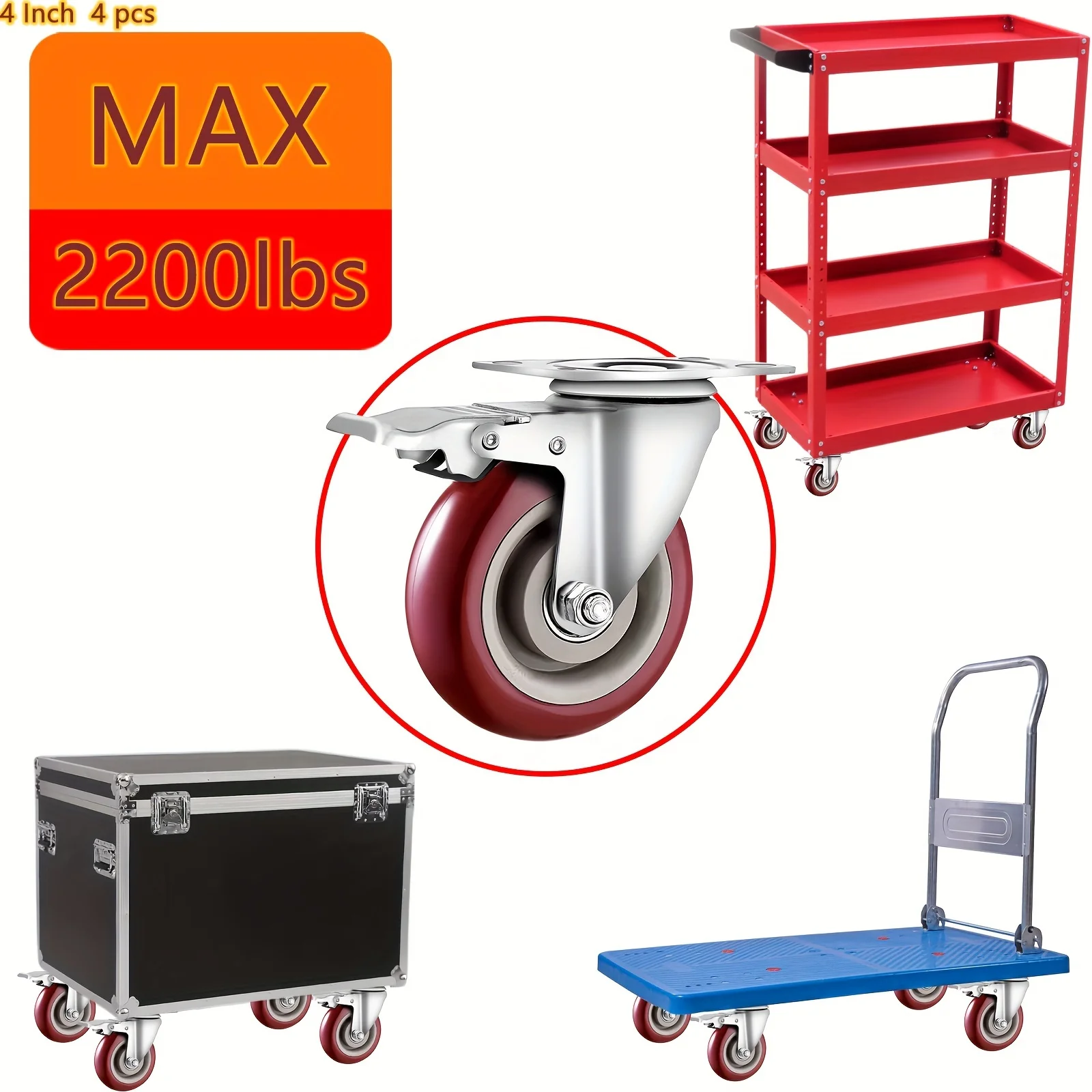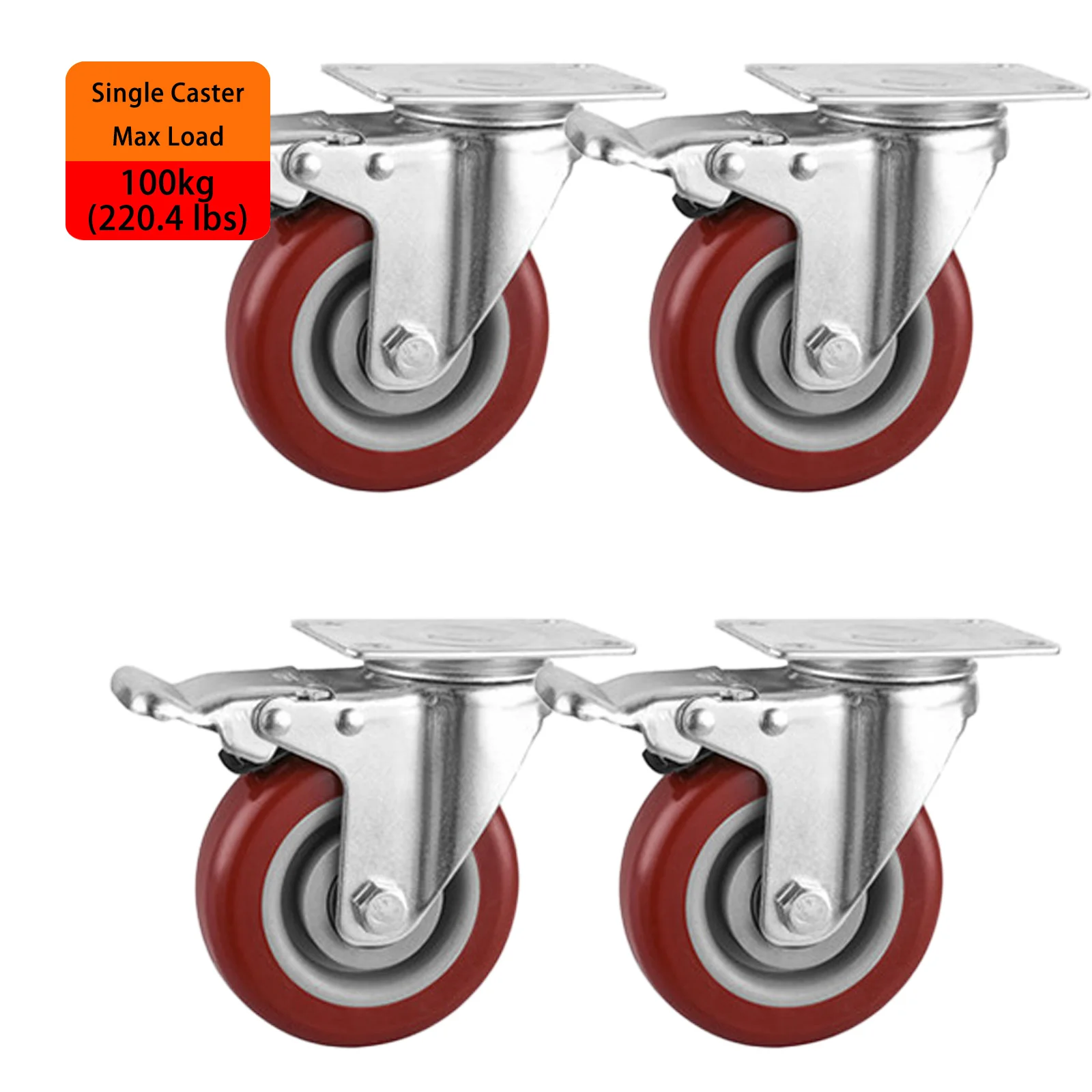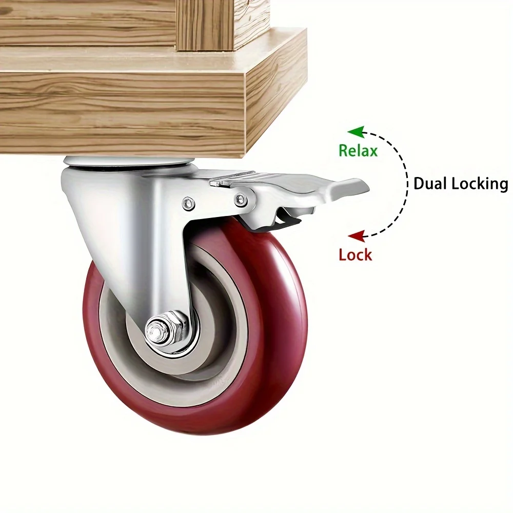 ロックブレーキ付き高耐久4インチキャスター4個、工業用回転ホイール耐荷重2400ポンド、交換用家具キャスター - TopDealBox