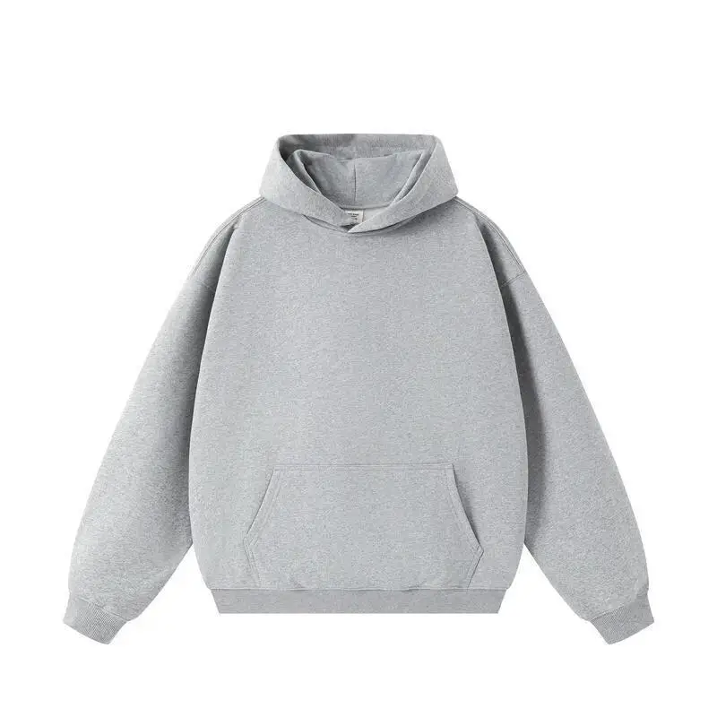 レトロな450gヘビーウェイトループショルダーフード付きスウェットシャツ、メンズプリント柄、紐なしルーズフィットフーディージャケット - TopDealBox
