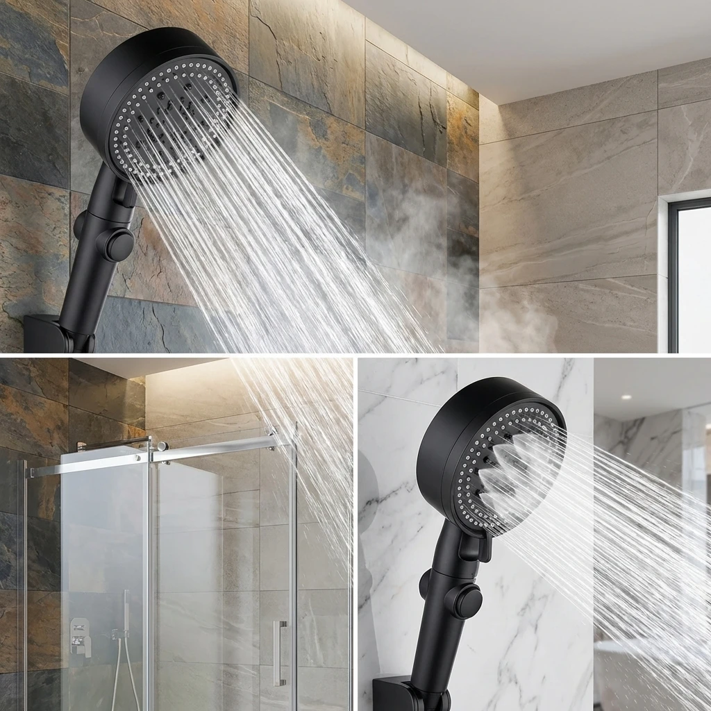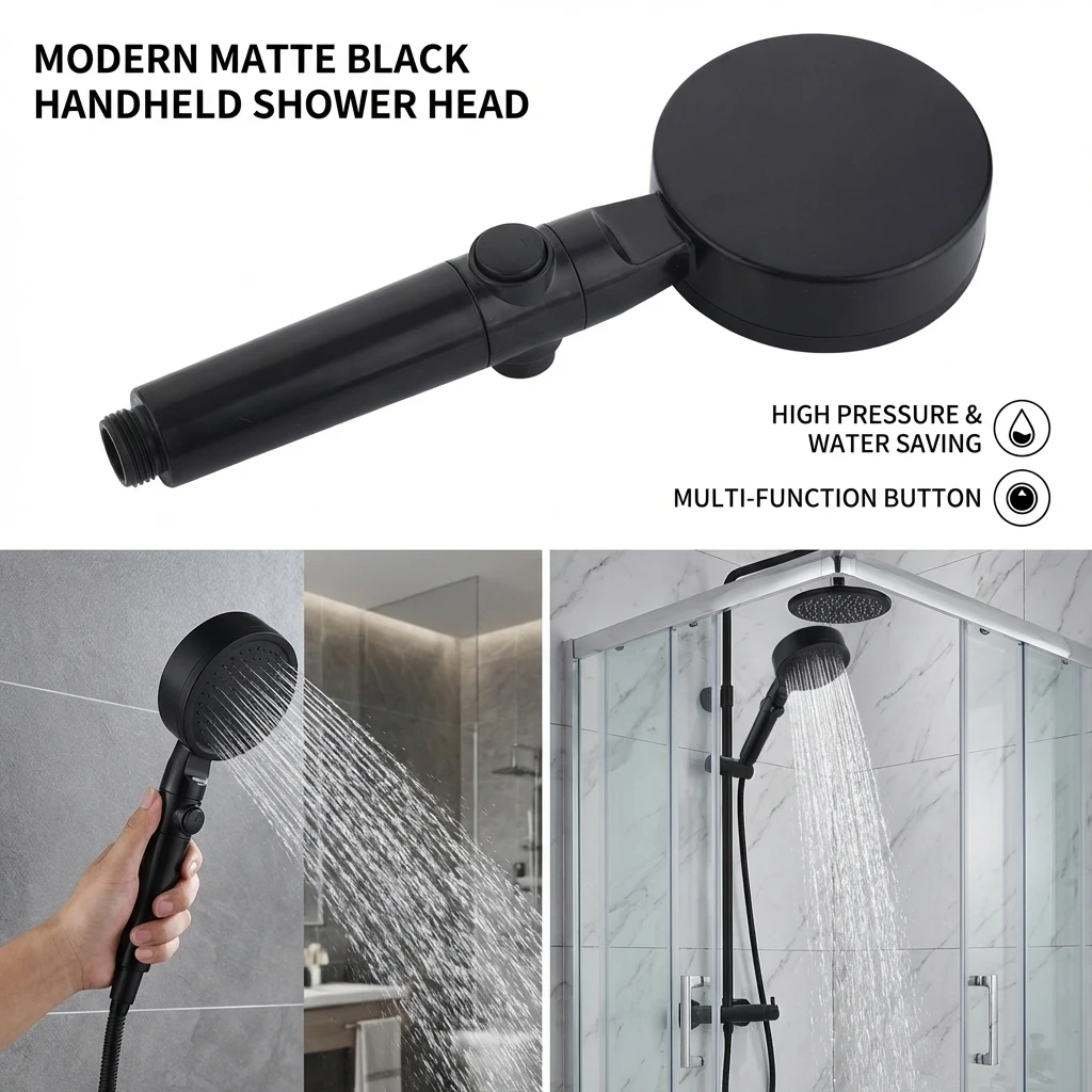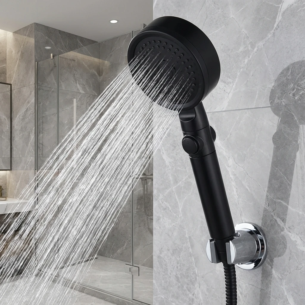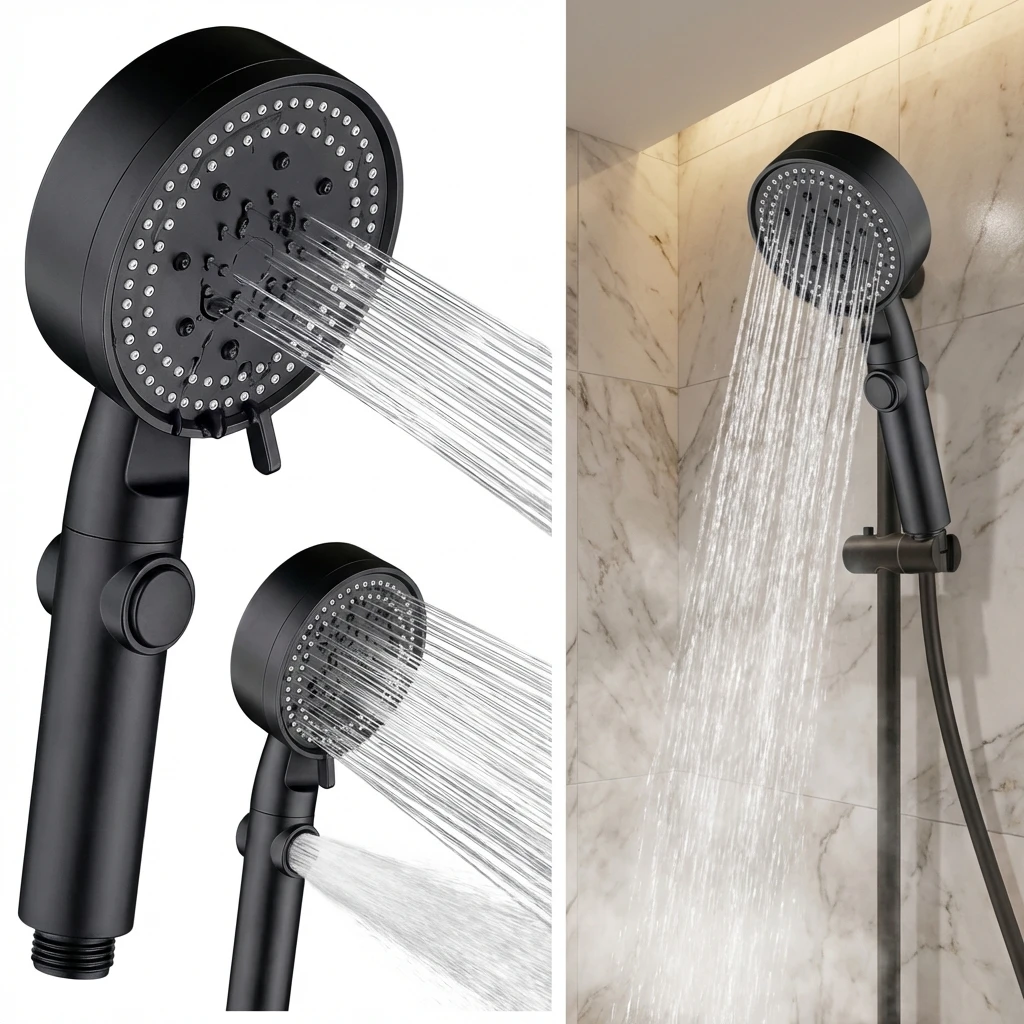 5つのモードを備えた調節可能な高圧シャワーヘッド、節水ワンキーストップスプレーノズル - ホース付きバスルームシャワーアクセサリー - TopDealBox