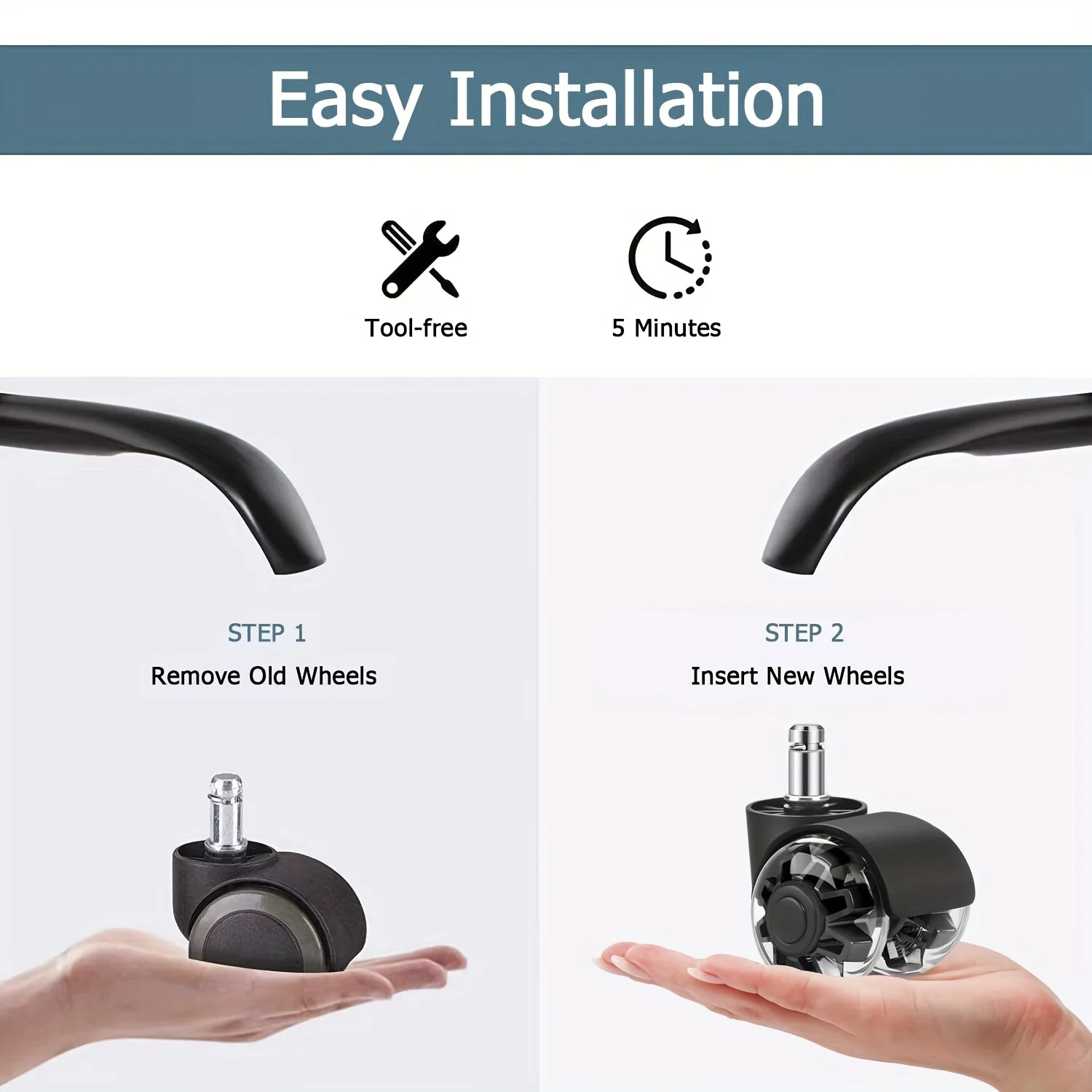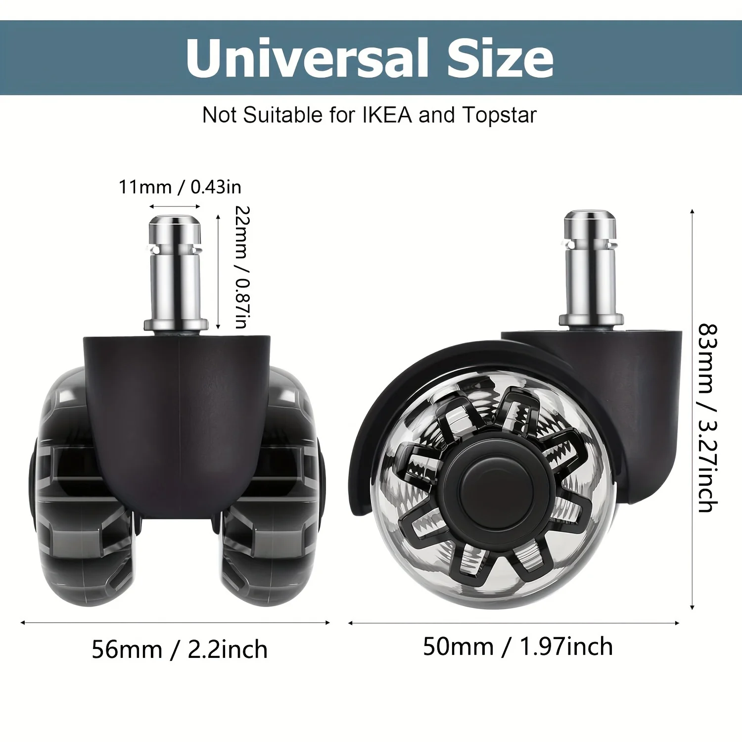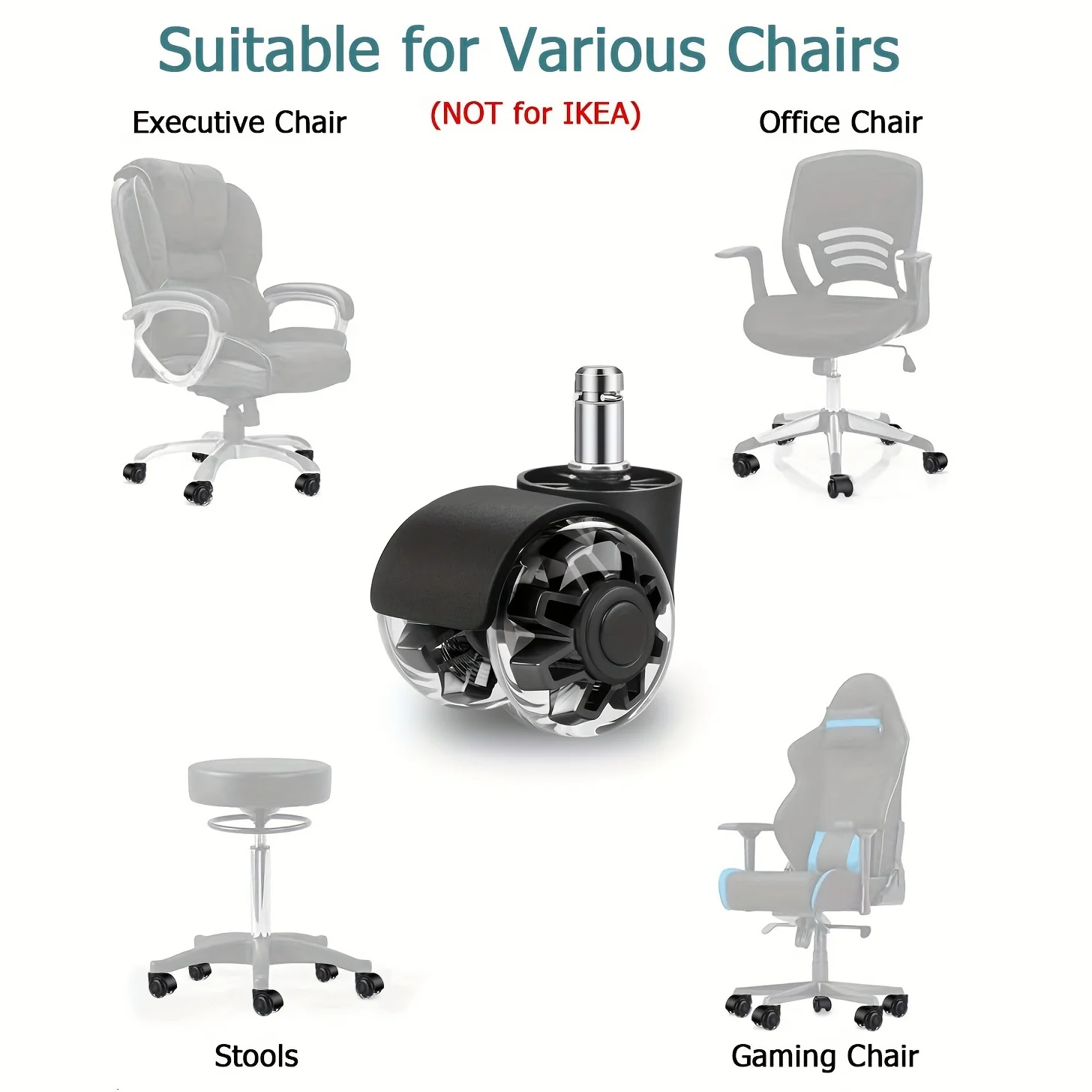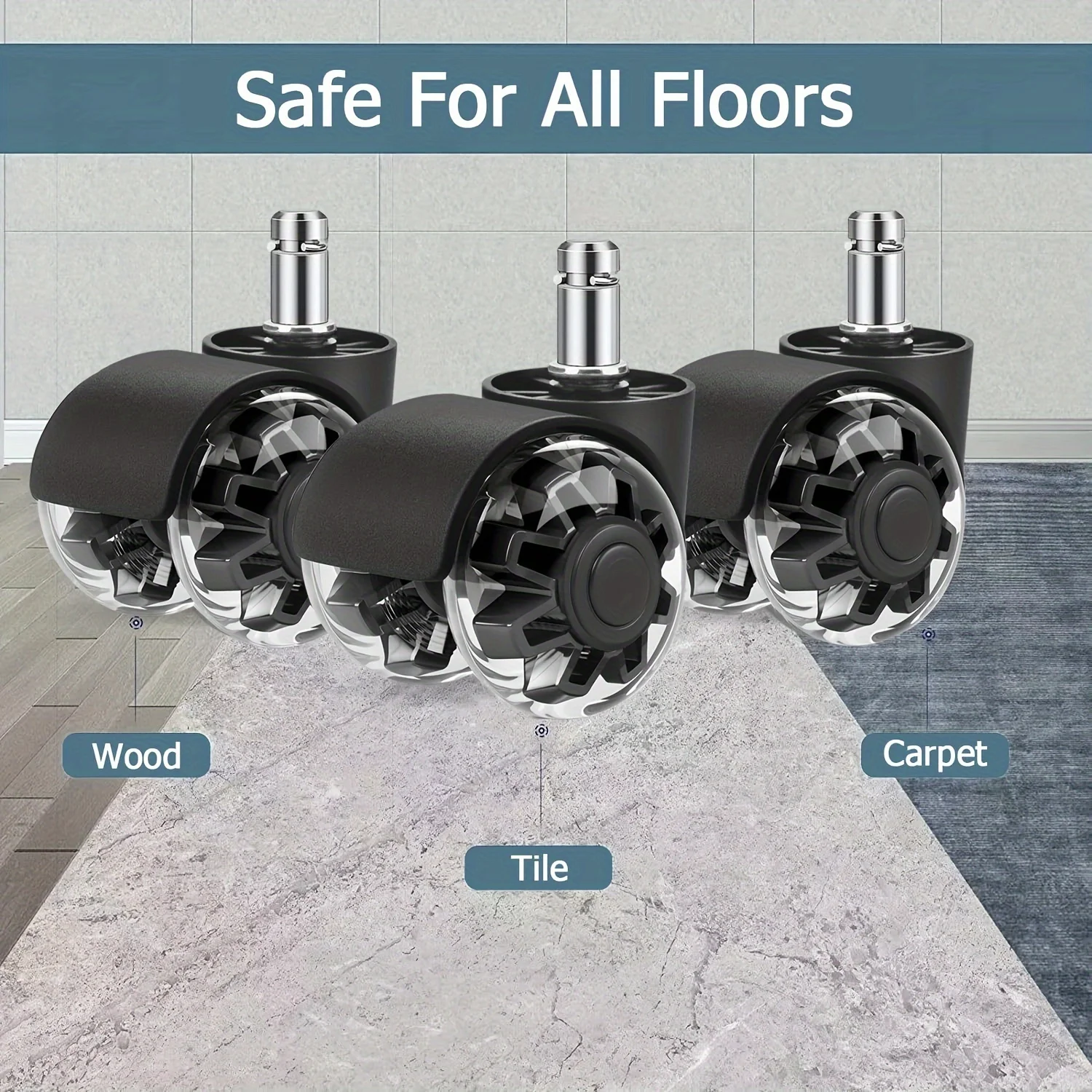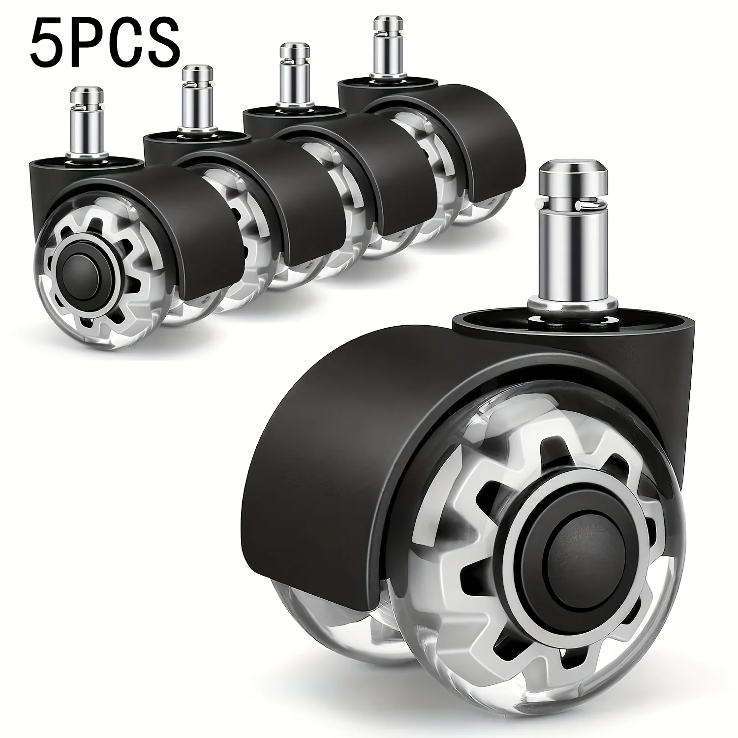 5個 2インチ高耐久グレーPUサイレントスイベルステムキャスター、オフィスチェア、ゲームチェア用の滑らかで耐久性のあるホイール - TopDealBox