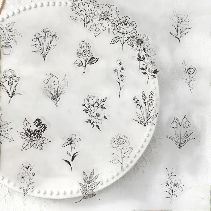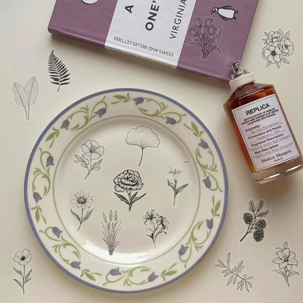 日曜大工の植物パターンステッカー、電話ケース、ウォーターカップ、ペットステッカー装飾、黒と白、50個に最適 - TopDealBox