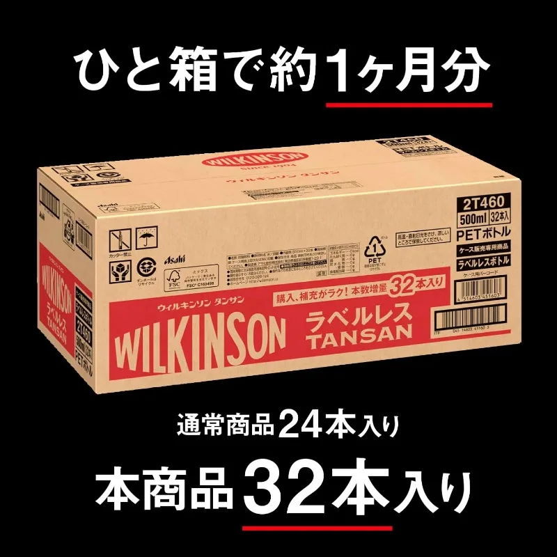 ウィルキンソン アサヒ ソフトドリンク タンザン ラベルレス 500ml×32本 [炭酸水]