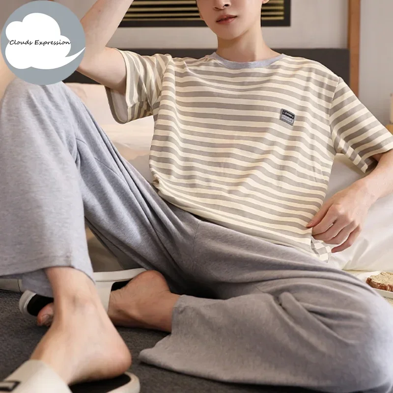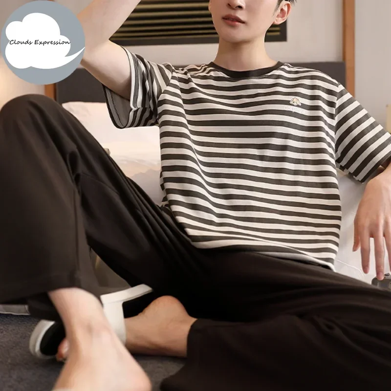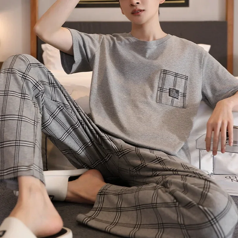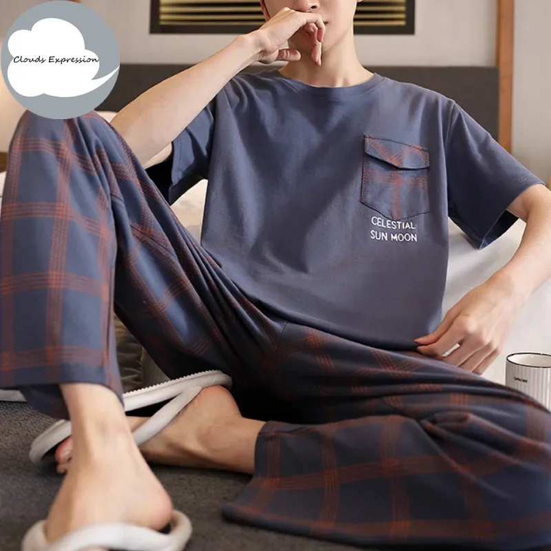 ♡Quick view夏ニットチェック柄クールメンズパジャマパジャマカジュアルショートトップス + 長ズボンセット男性のパジャマナイトウェア Pijamas 4XL Homewea1692 JPYHot★★★★★4.3
