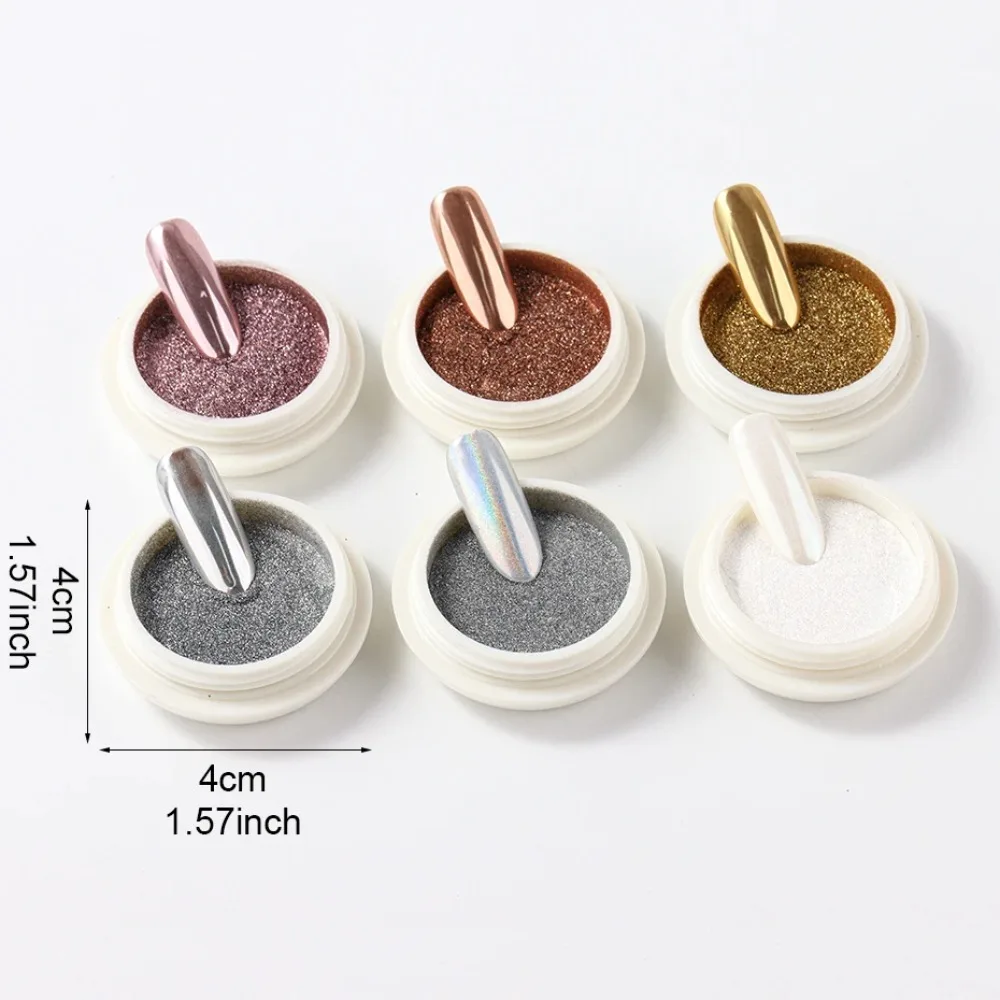 6 個クロームミラーホワイトネイルパウダー顔料ゴールドシルバーラビングホログラフィックオーロラ虹色メタリックネイルアートパワー装飾 - TopDealBox