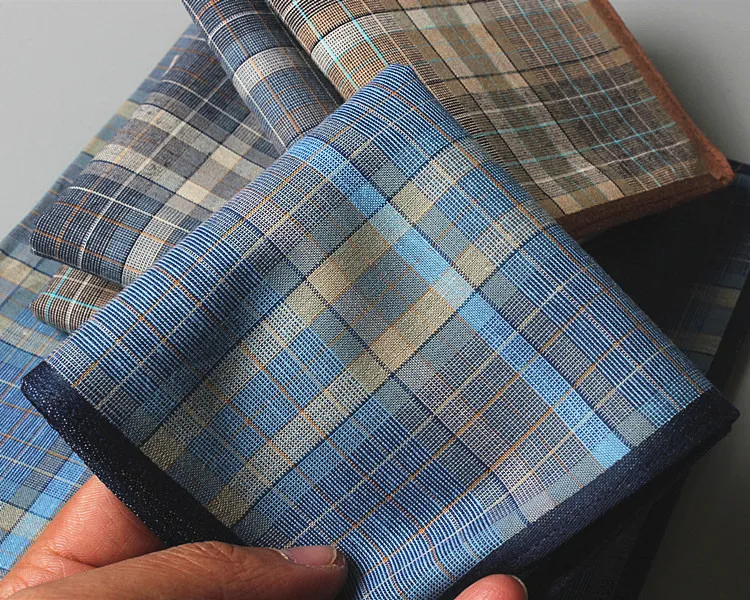 6 個の格子縞高密度ビジネススタイルメンズ純綿ハンカチ薄い吸水汗拭きハンドタオルポータブル 40 センチメートル - TopDealBox