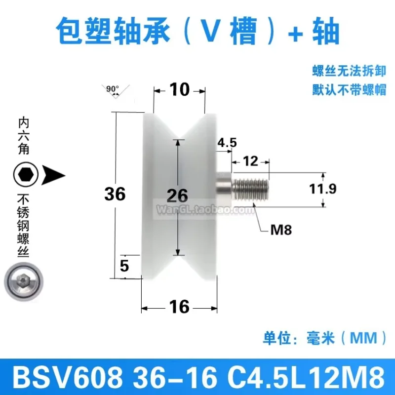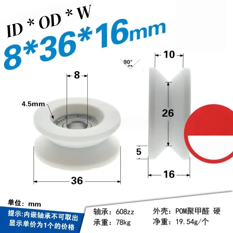 6 個 8x36x16mm V 溝ベアリングプーリー 608zz ベアリング 90 度直角ラッププラスチックプーリー M8 ネジ付き - TopDealBox