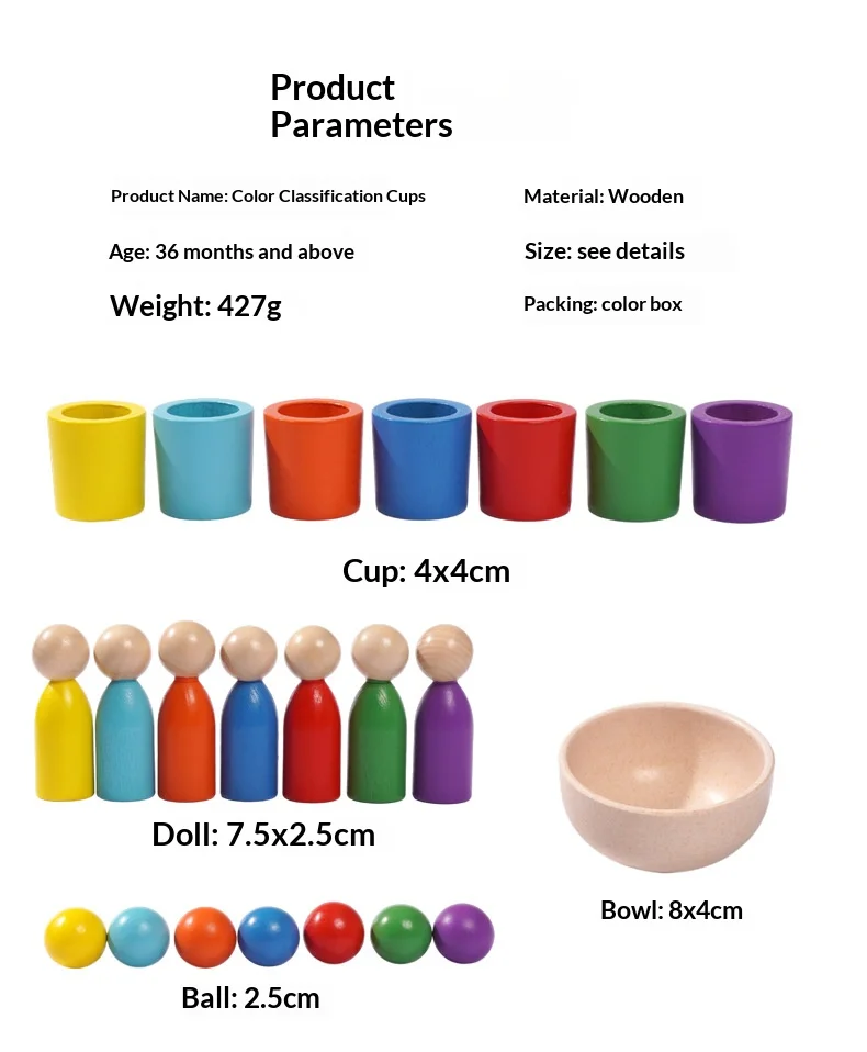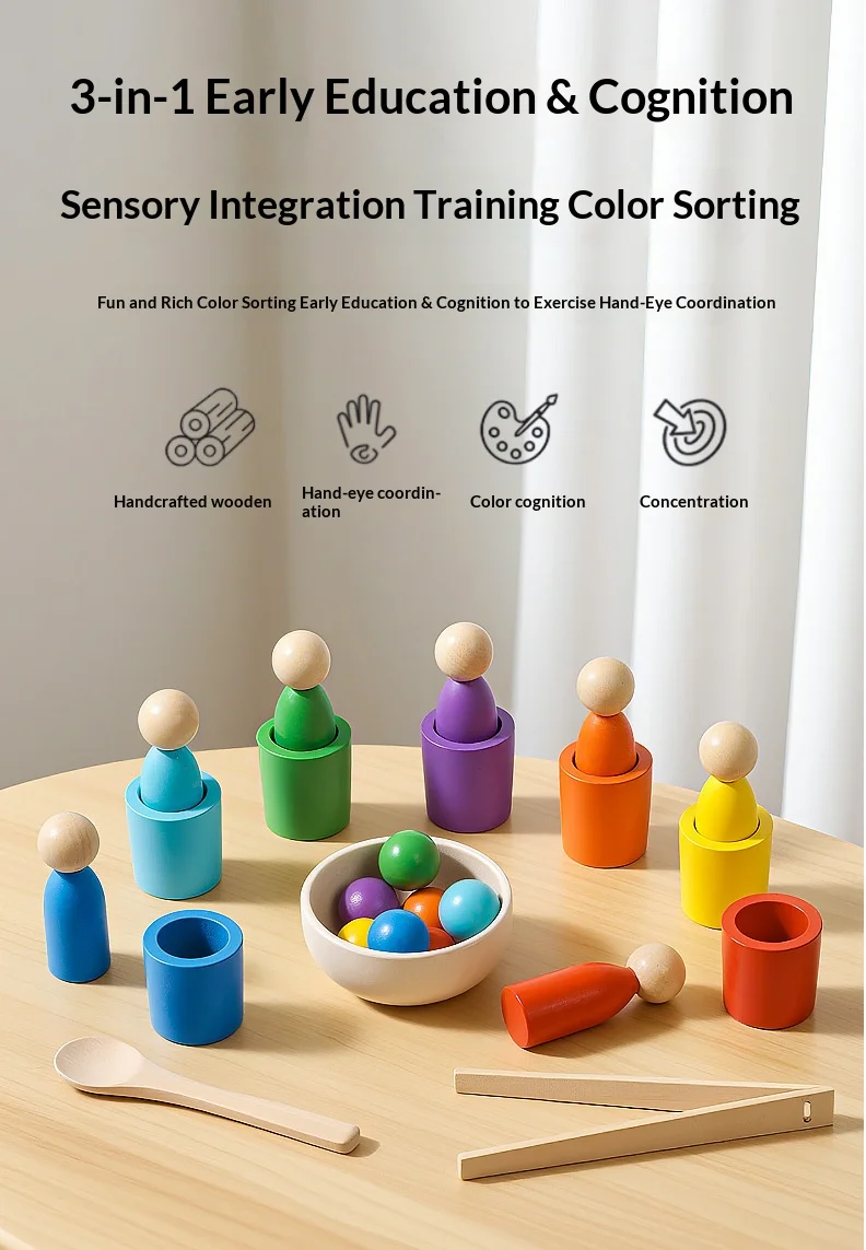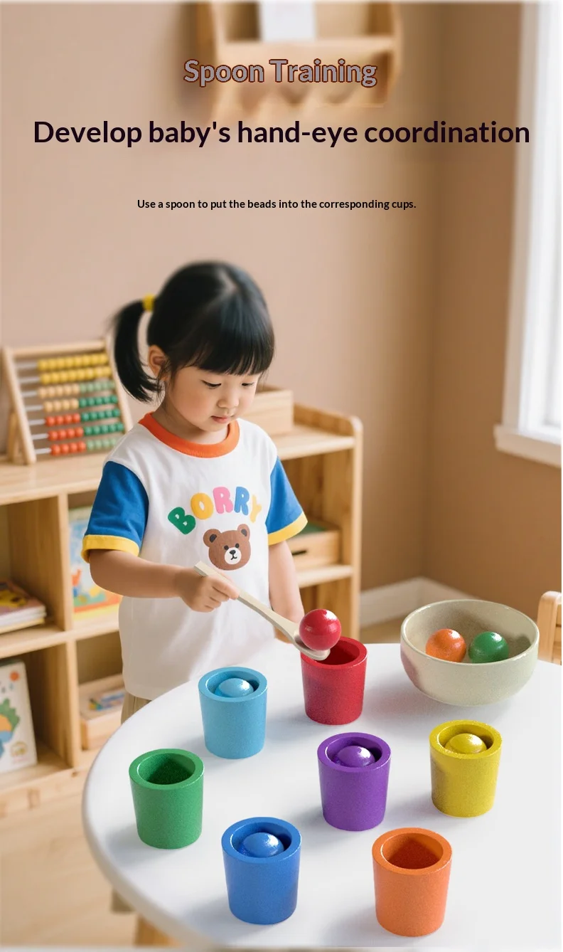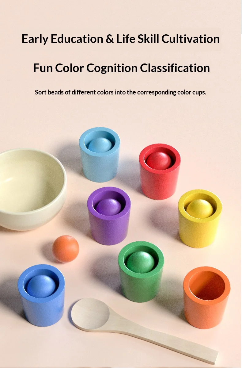 7色認知マッチングソーティングカップ – 子供の集中力トレーニングのための木製教育玩具 - TopDealBox