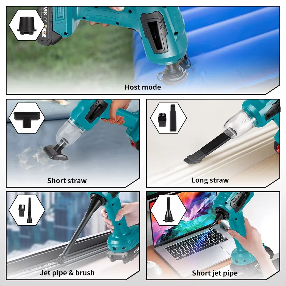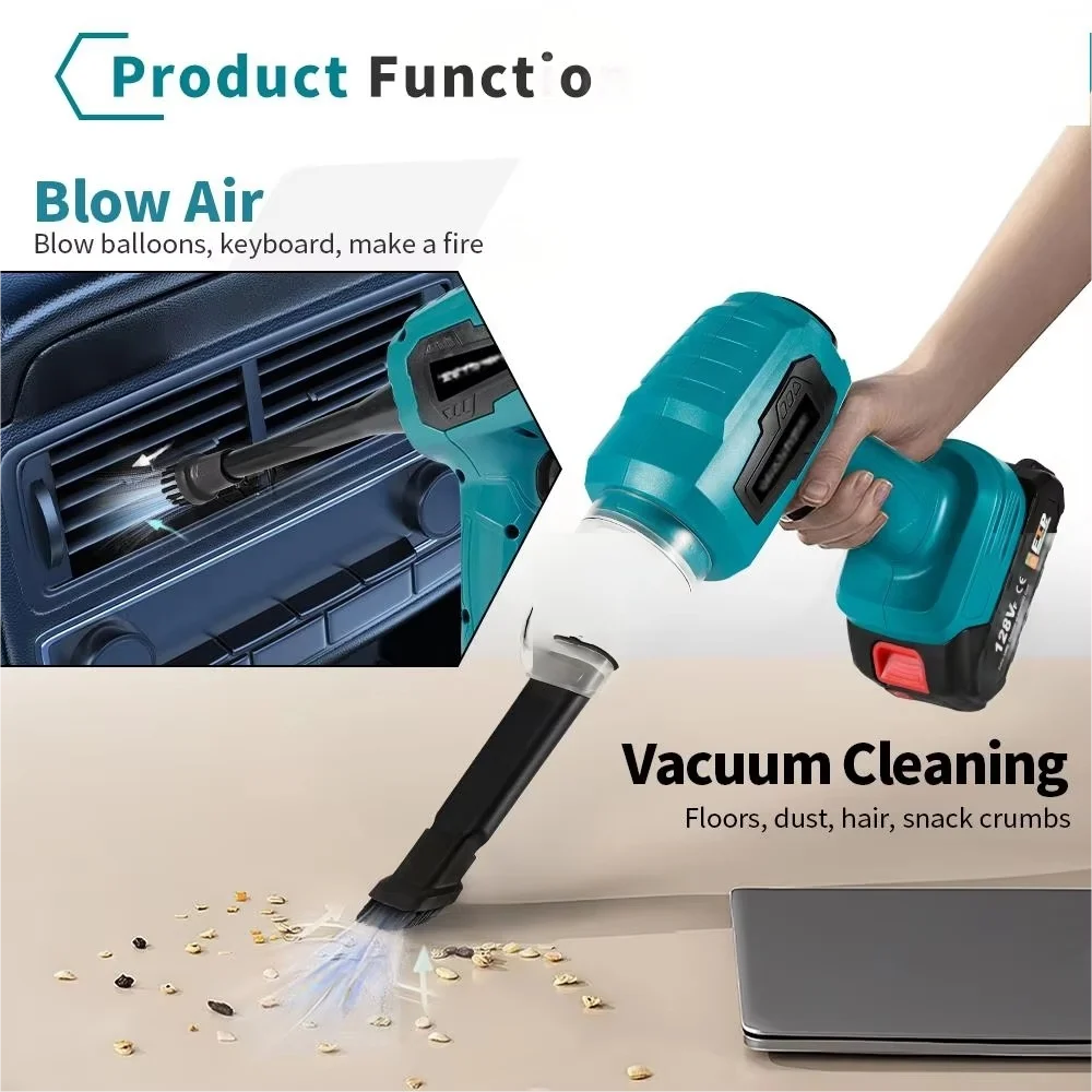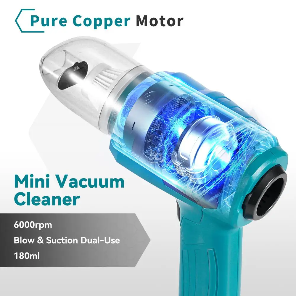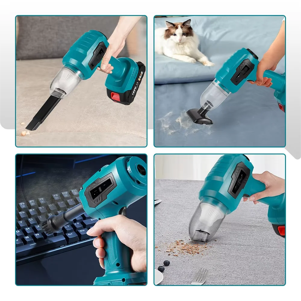 強力な吸引ミニ電気掃除機ワイヤレスハンドヘルドホームクリーナーブロワー 7 ノズル付き 21V 18V バッテリー - TopDealBox
