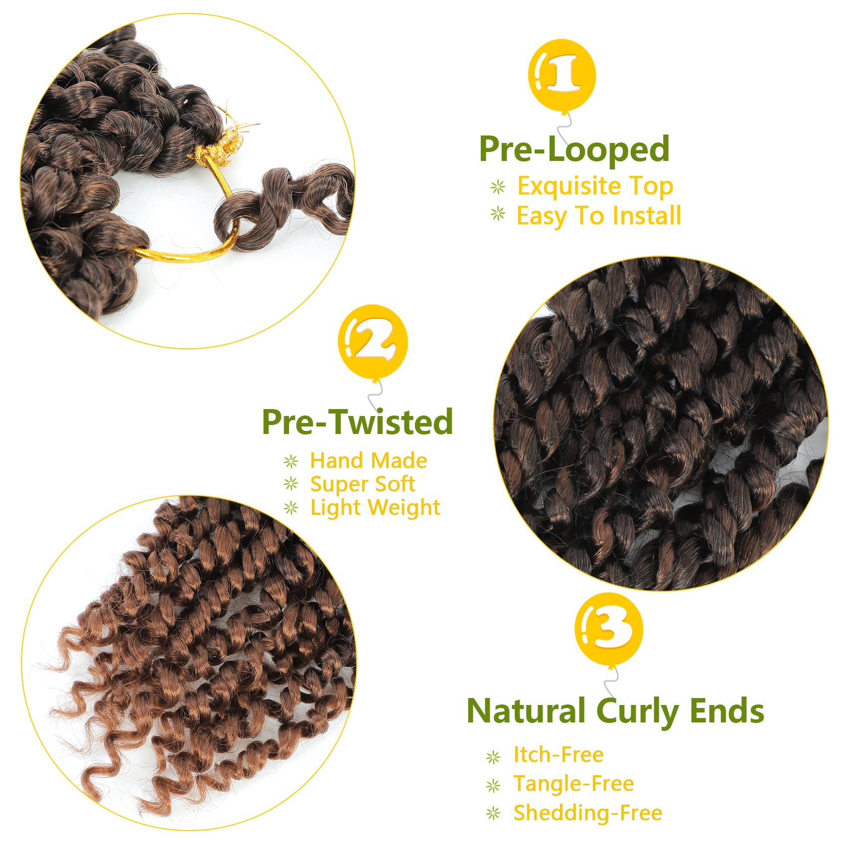 黒人女性のためのパッションツイスト人工毛,巻き毛の端を持つ事前にループされたかぎ針編みの髪,8パック - TopDealBox