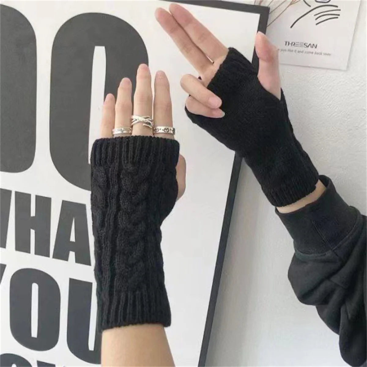 ツイストグローブ 8字型ウールハーフフィンガーショートリストガードフィンガーレスアームカバー秋冬暖かい手袋アクリルカフス - TopDealBox
