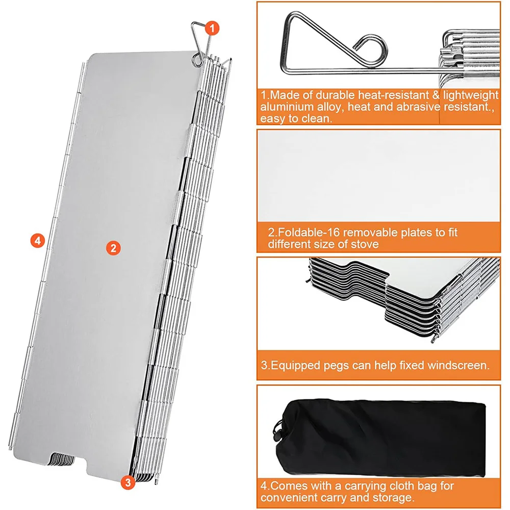 8/9/10/12/14/16 プレート折りたたみキャンプストーブフロントガラスガスストーブフロントガラス軽量屋外ピクニッククッカーウインドスクリーン