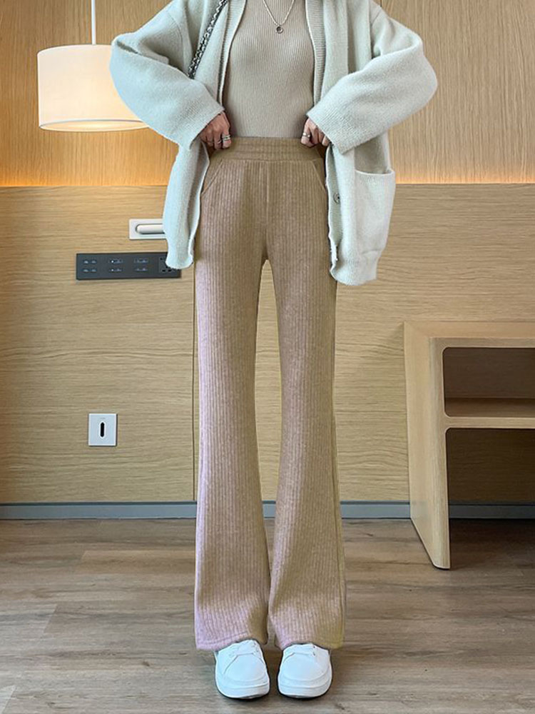 女性用ハイウエストフレアパンツ,ぬいぐるみパンツ,裏地付き,暖かく,厚く,ベルベット,エレガント,韓国ファッション,冬,90cm