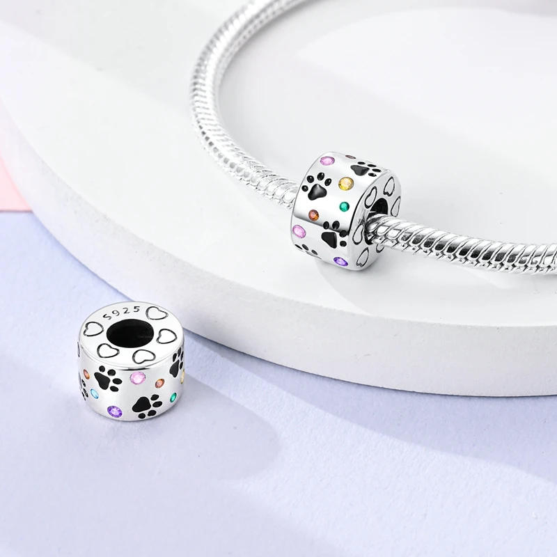 ♡Quick viewチャーム 925スターリングシルバー 犬 猫 肉球 プリント 愛 ペット チャーム ビーズ オリジナルブレスレット ネックレス ペンダント レディース DIY ジュエリー対応235 JPYHot★★★★★★4.8