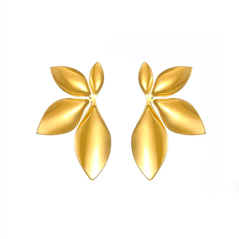 女性のための葉の花のイヤリング,韓国のファッション,金色の金属のイヤリング,925シルバーの針,流行のジュエリー,2024 - TopDealBox