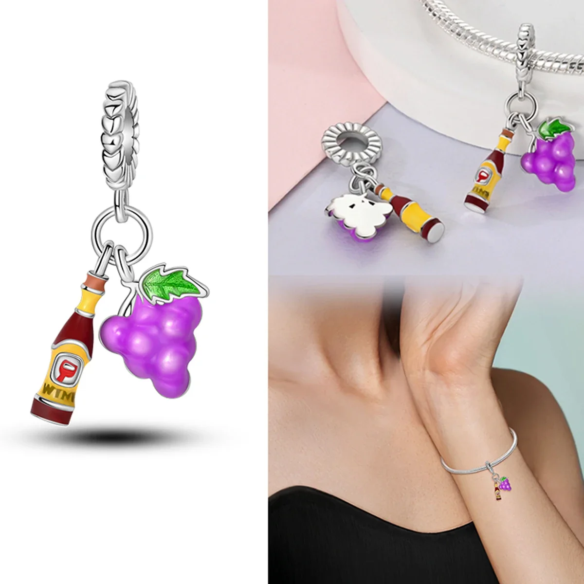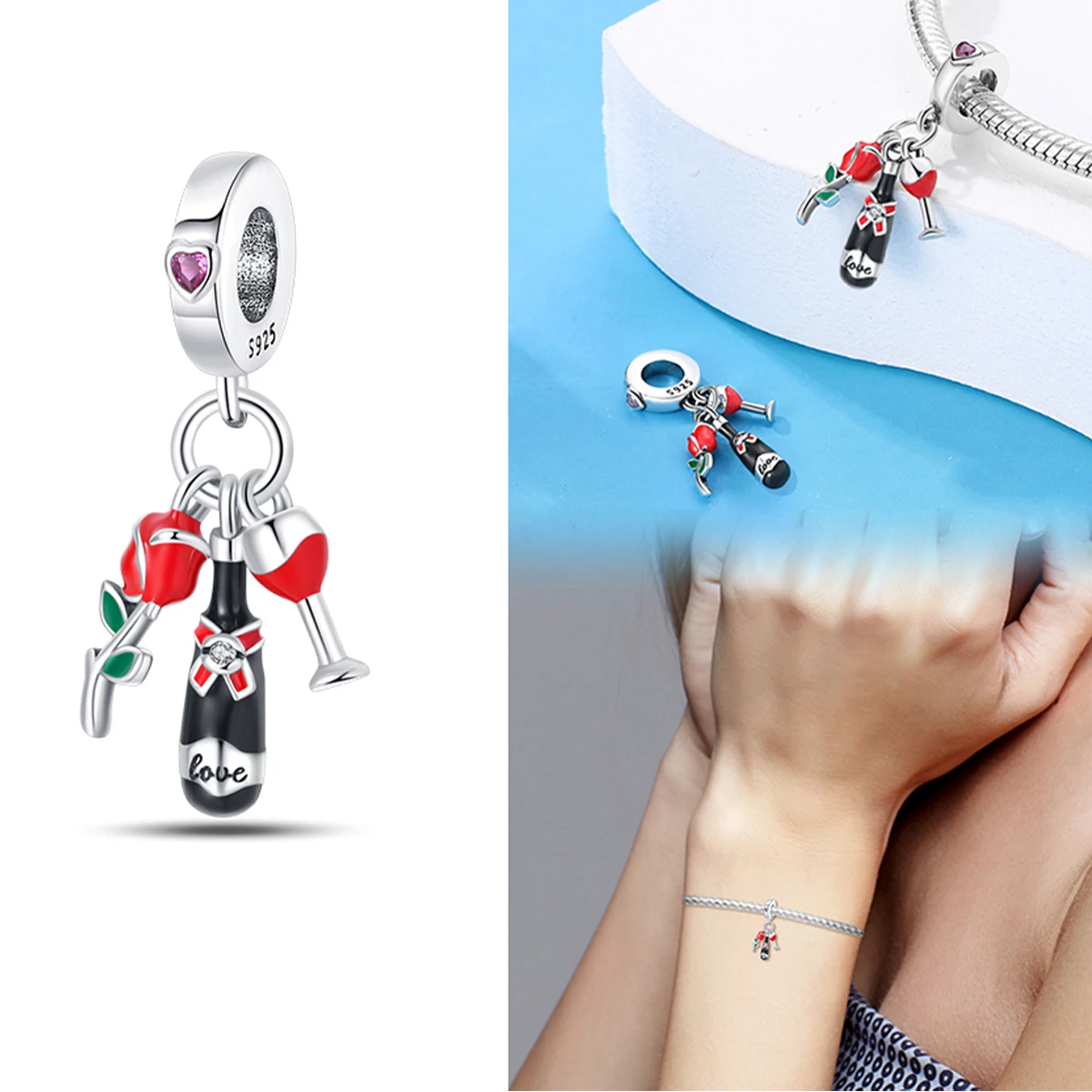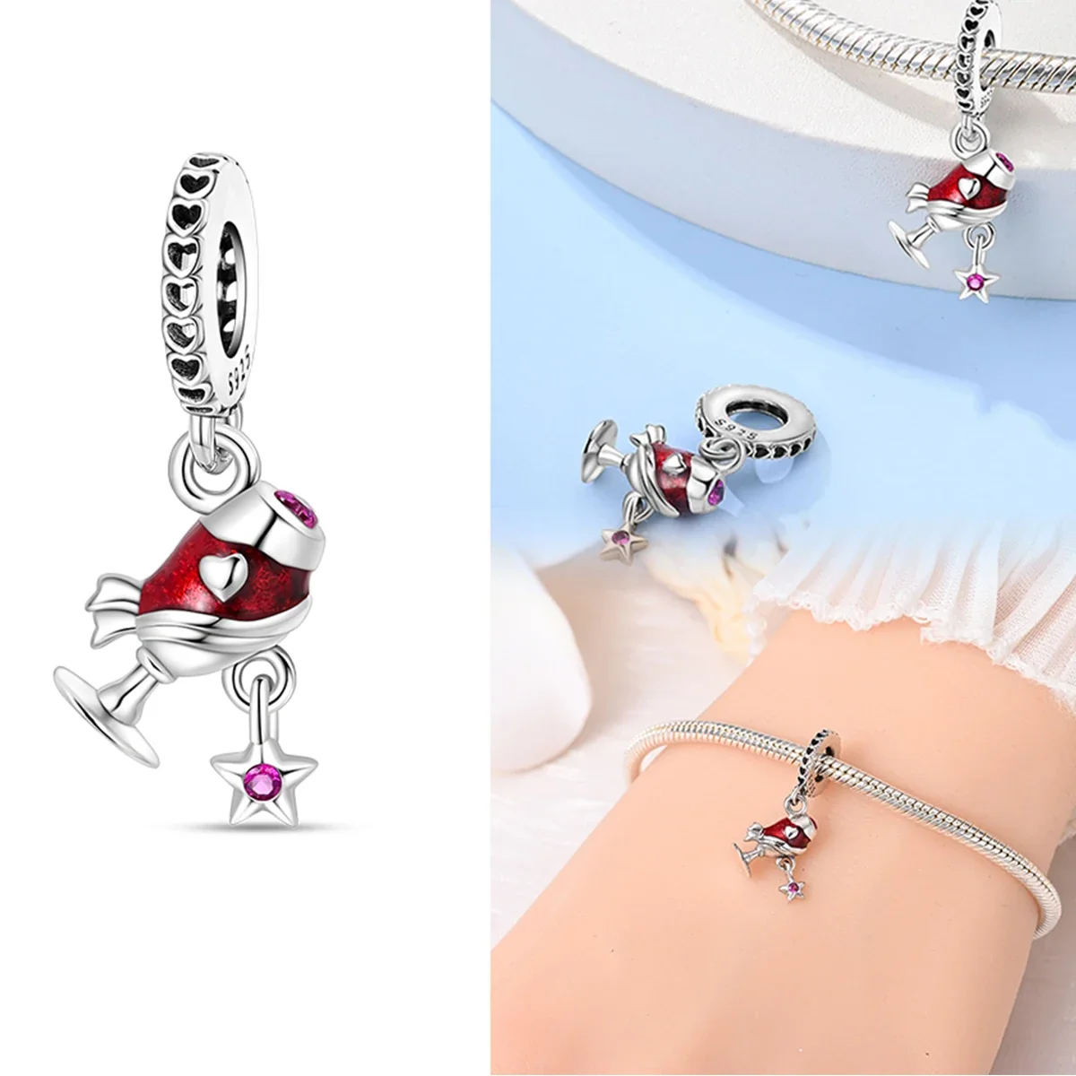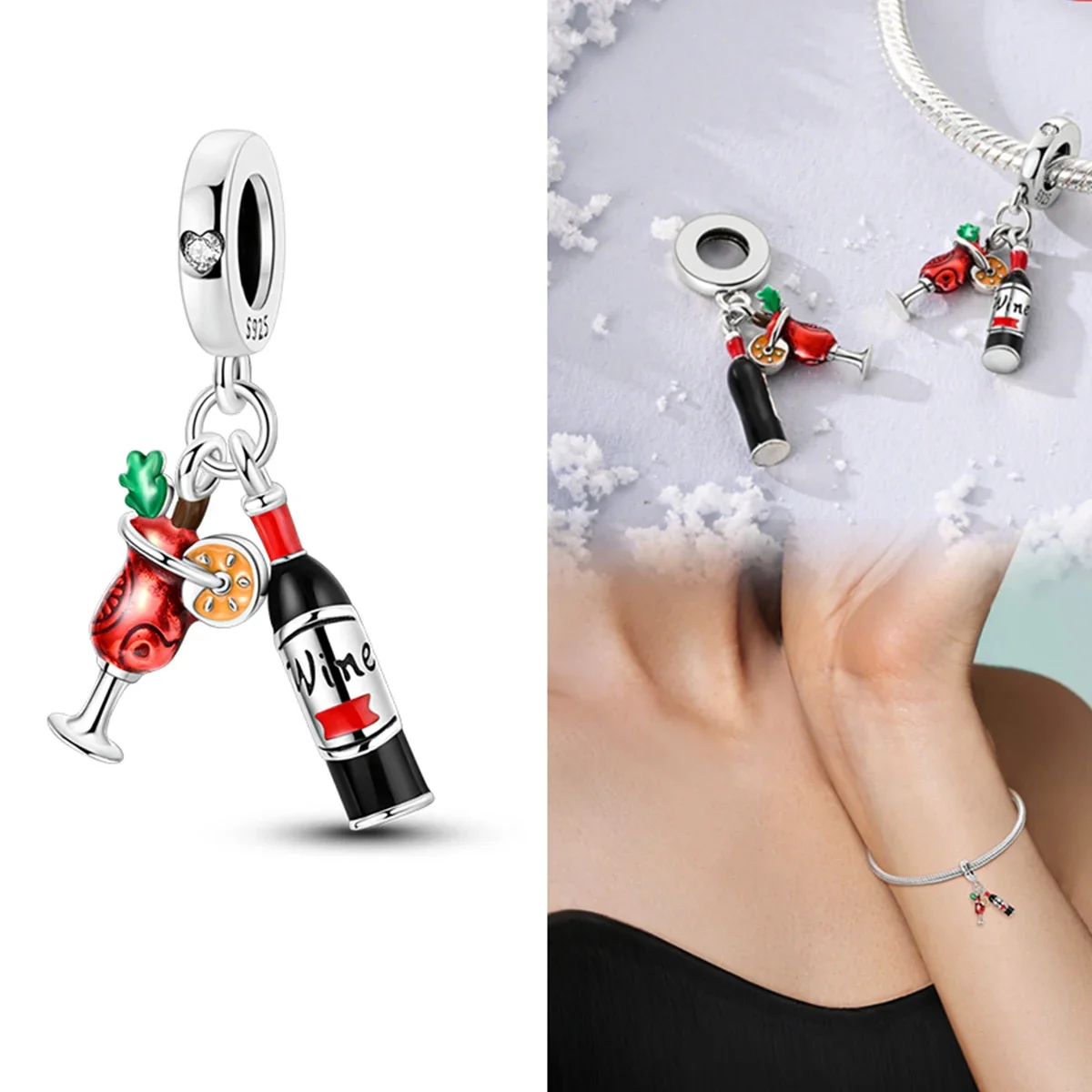 オリジナル925スターリングシルバーチャームビーズワインコーヒーカップウイスキーシャンパンフィットブレスレットネックレスペンダント女性DIYジュエリーギフト - TopDealBox