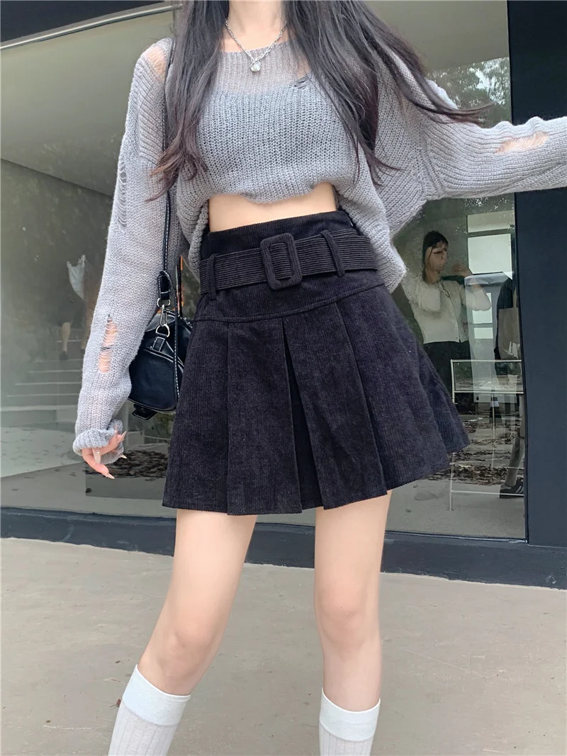 プラスサイズの冬のコーデュロイスカートハイウエスト A ラインミニスカート女性のファッション通勤スタイル多用途プリーツショートスカート - TopDealBox
