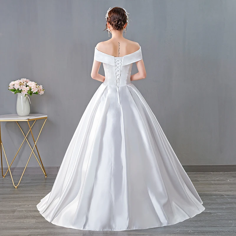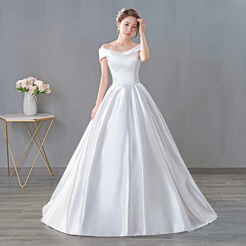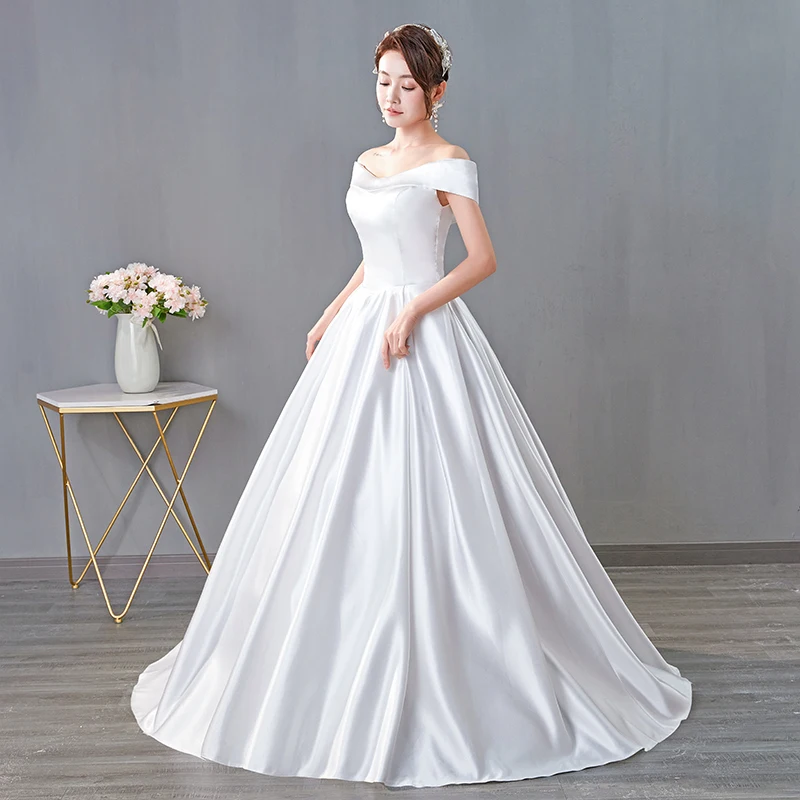 プリンセススタイルのウェディングドレスワンショルダーチュールサテンライトおとぎ話の花嫁ドレスAラインスカートミッドウエストシンプルなデザイン - TopDealBox