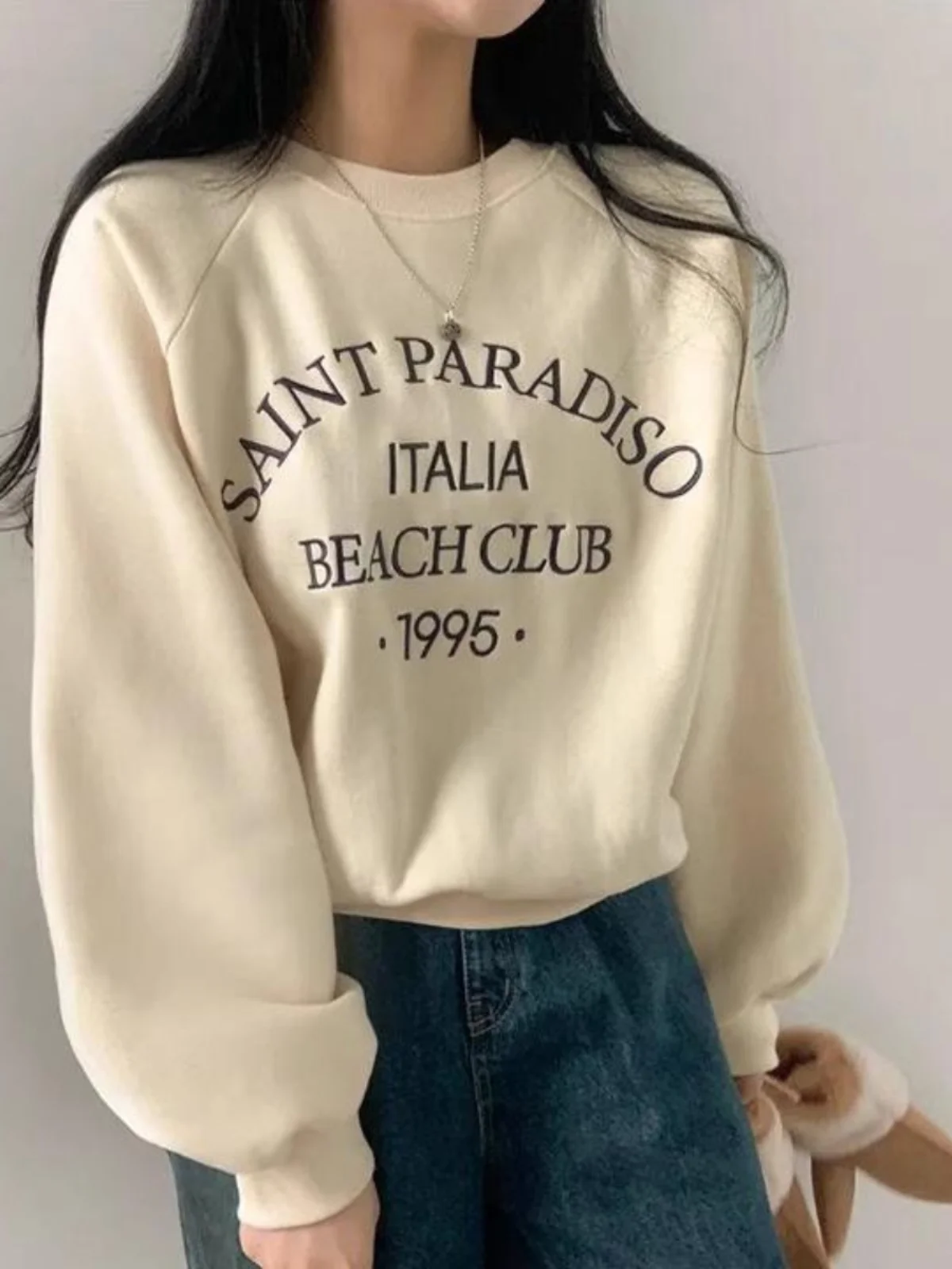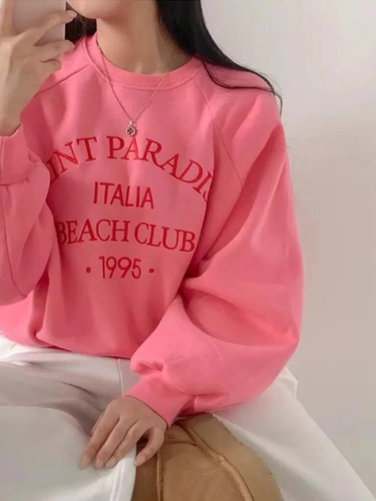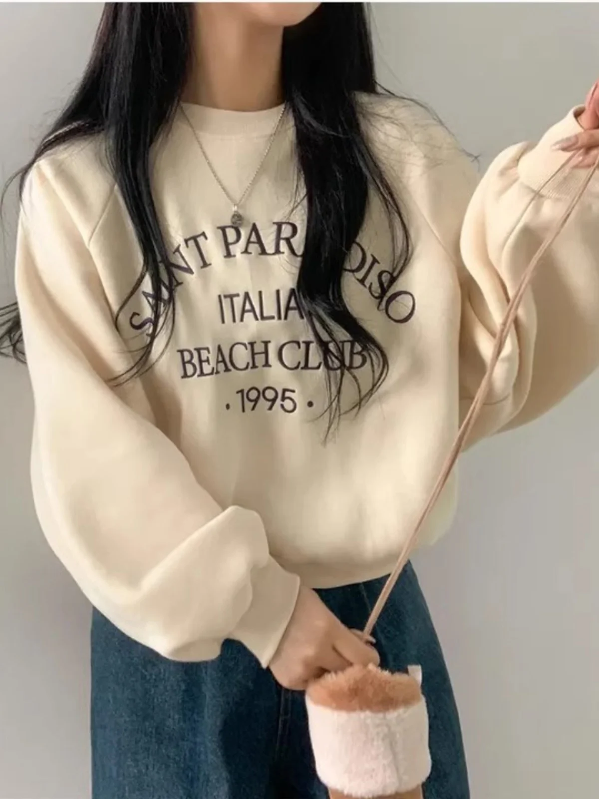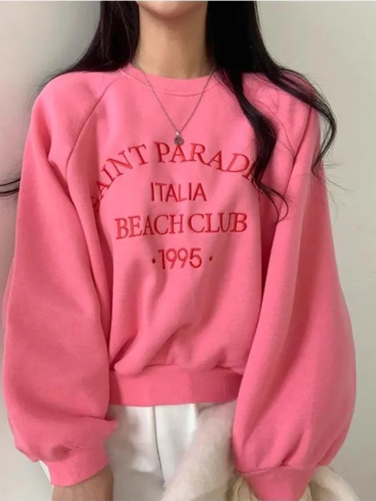 韓国スタイルラウンドネック刺繍文字肥厚フリース女性のトレーナーピンク秋冬シックな A-ファッションストリート - TopDealBox