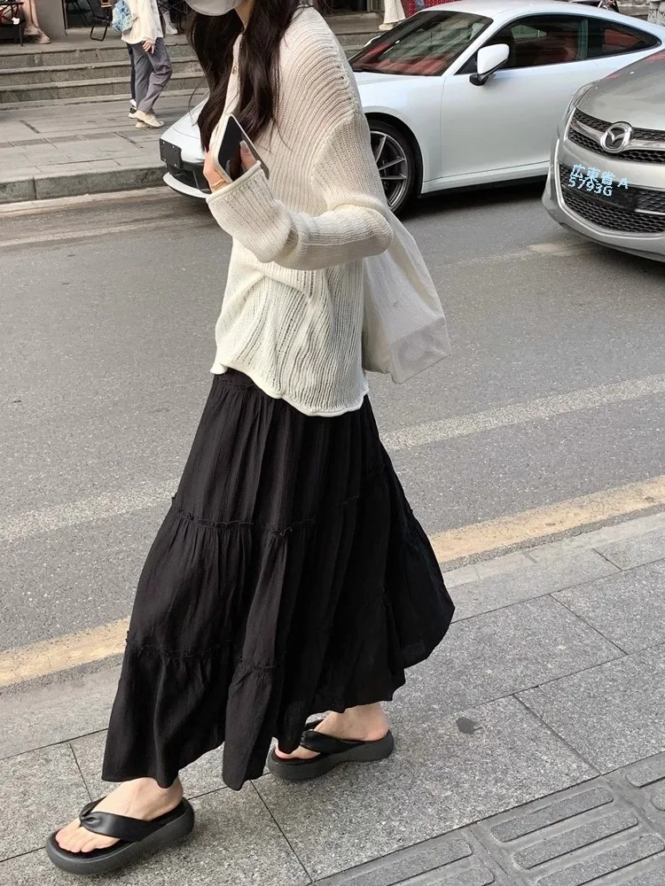レディースミディスカート 春夏 フロックスタイル ハイウエスト Aライン 韓国風 ホワイトプリーツガウンスカート 通勤に便利 - TopDealBox