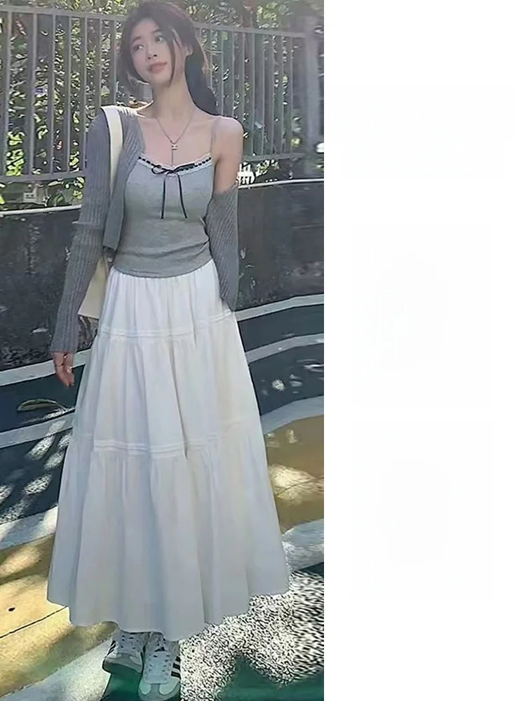 ホワイトハイウエストAラインミディスカート レディース 夏 2024 新作 ふわふわケーキスカート 細見え ショート丈 大きいサイズ 韓国風 - TopDealBox
