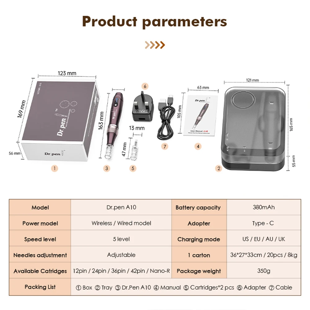本物のドクターペン A10 ワイヤレス 12 マイクロニードルドクターペンアルティママイクロニードルダーマペン長さ調節可能しわにきび治療 - TopDealBox