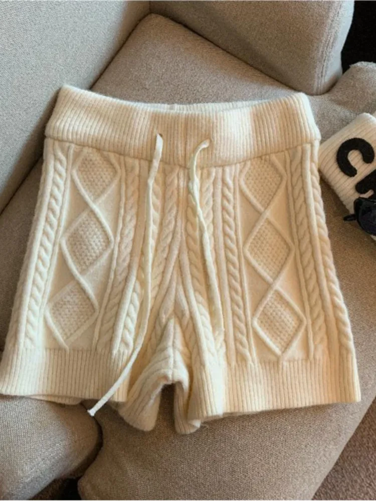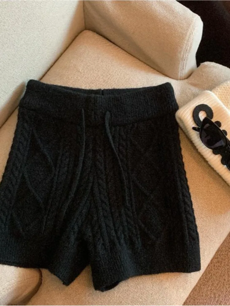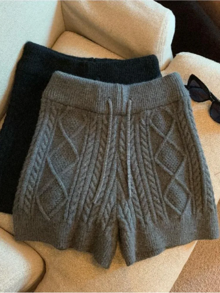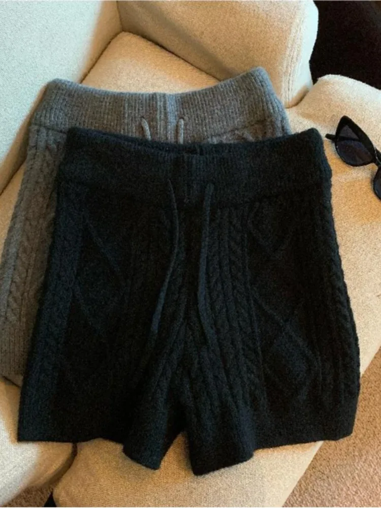 グレーニットハイウエストテクスチャー柄ショートパンツレディースファッショナブルな多用途Aラインタイトパンツ2025春韓国スタイル - TopDealBox