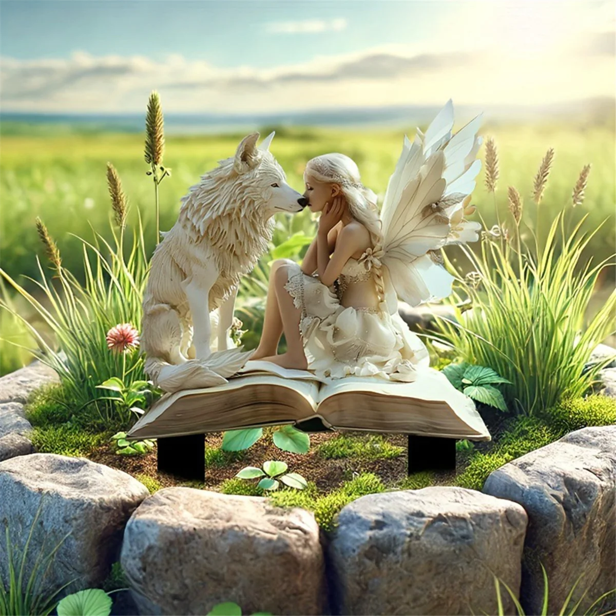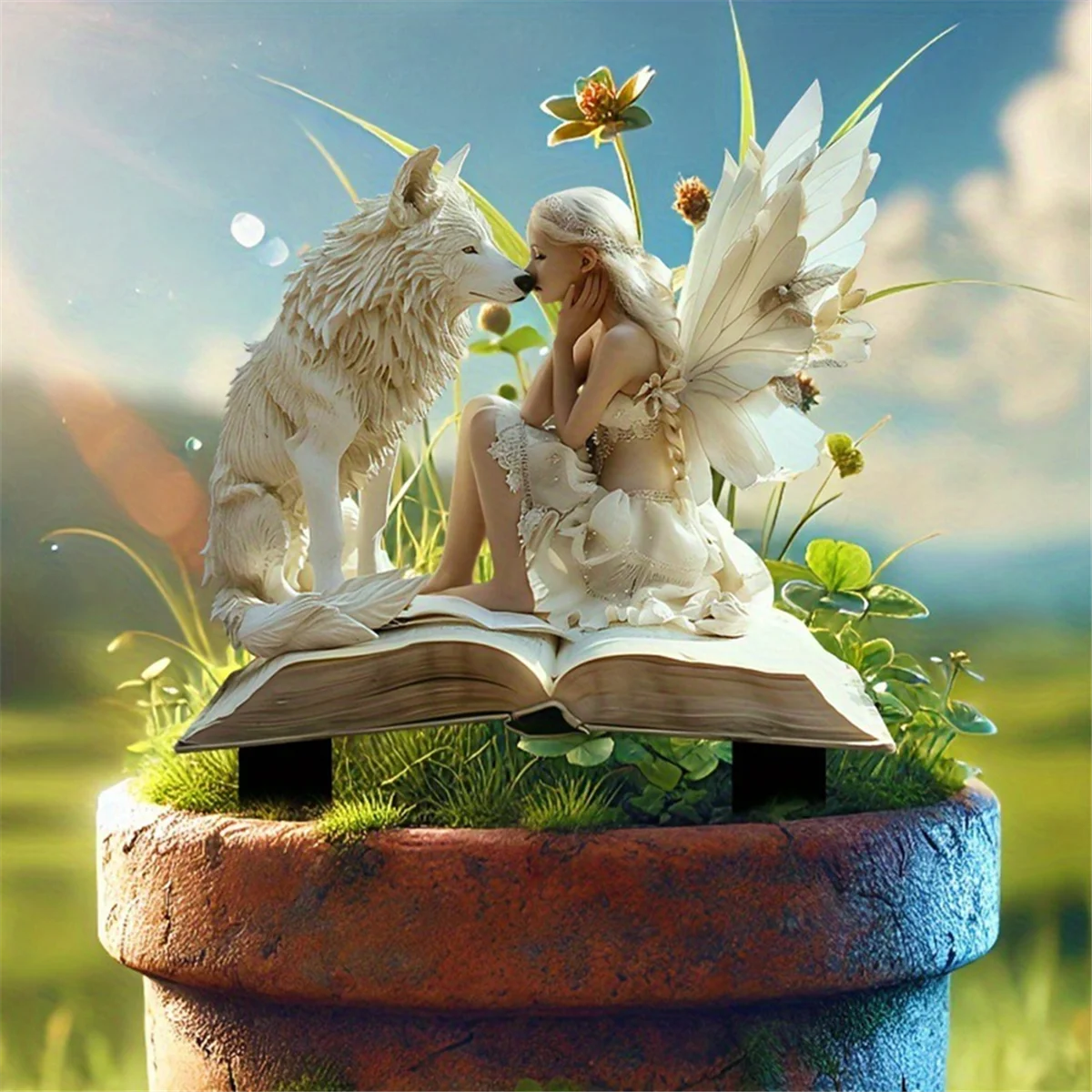 A72P マジェスティック オオカミと妖精、アクリル妖精フラワー ポット インサート、鉢植えや庭の芝生の装飾に最適 - TopDealBox