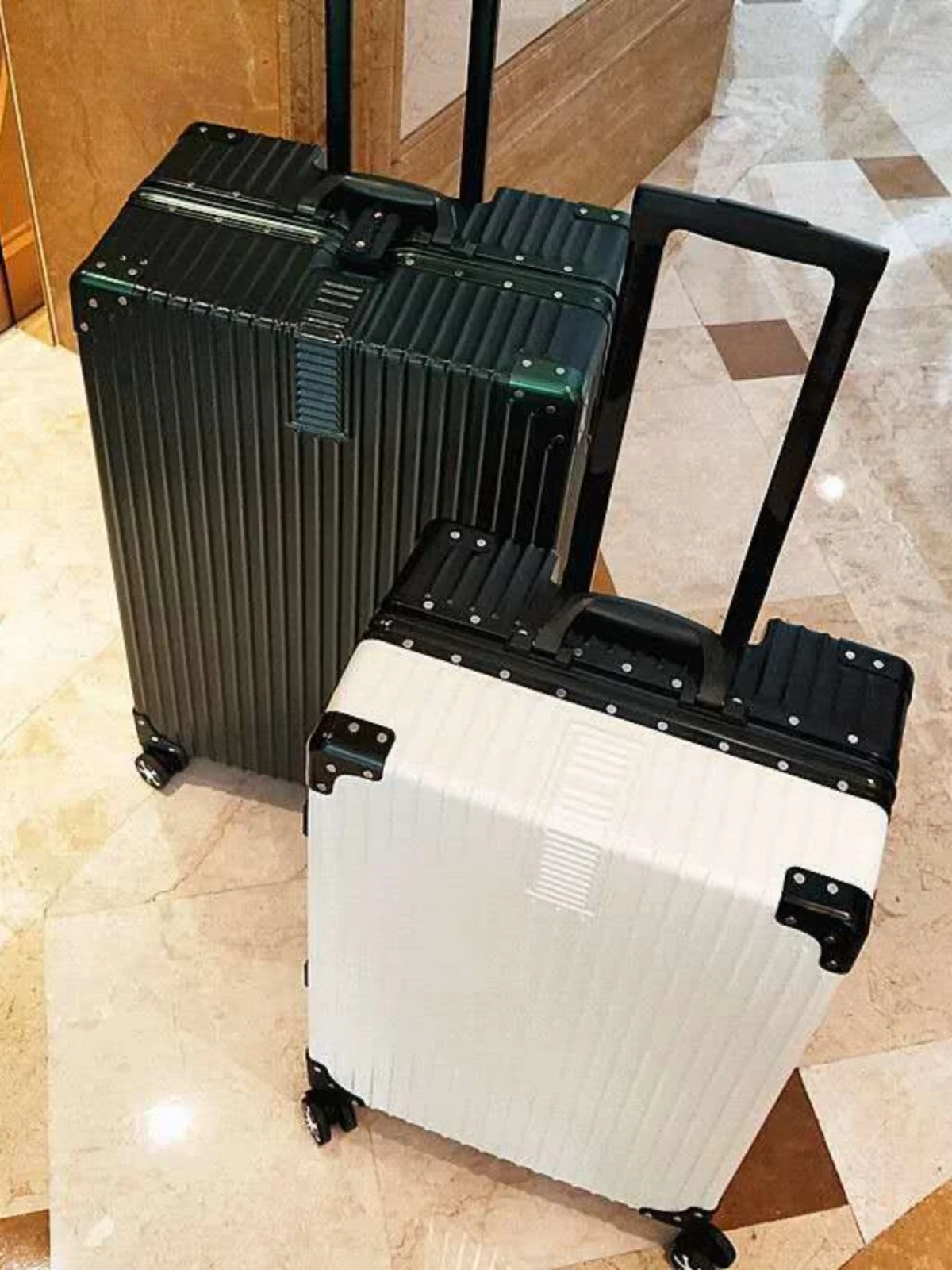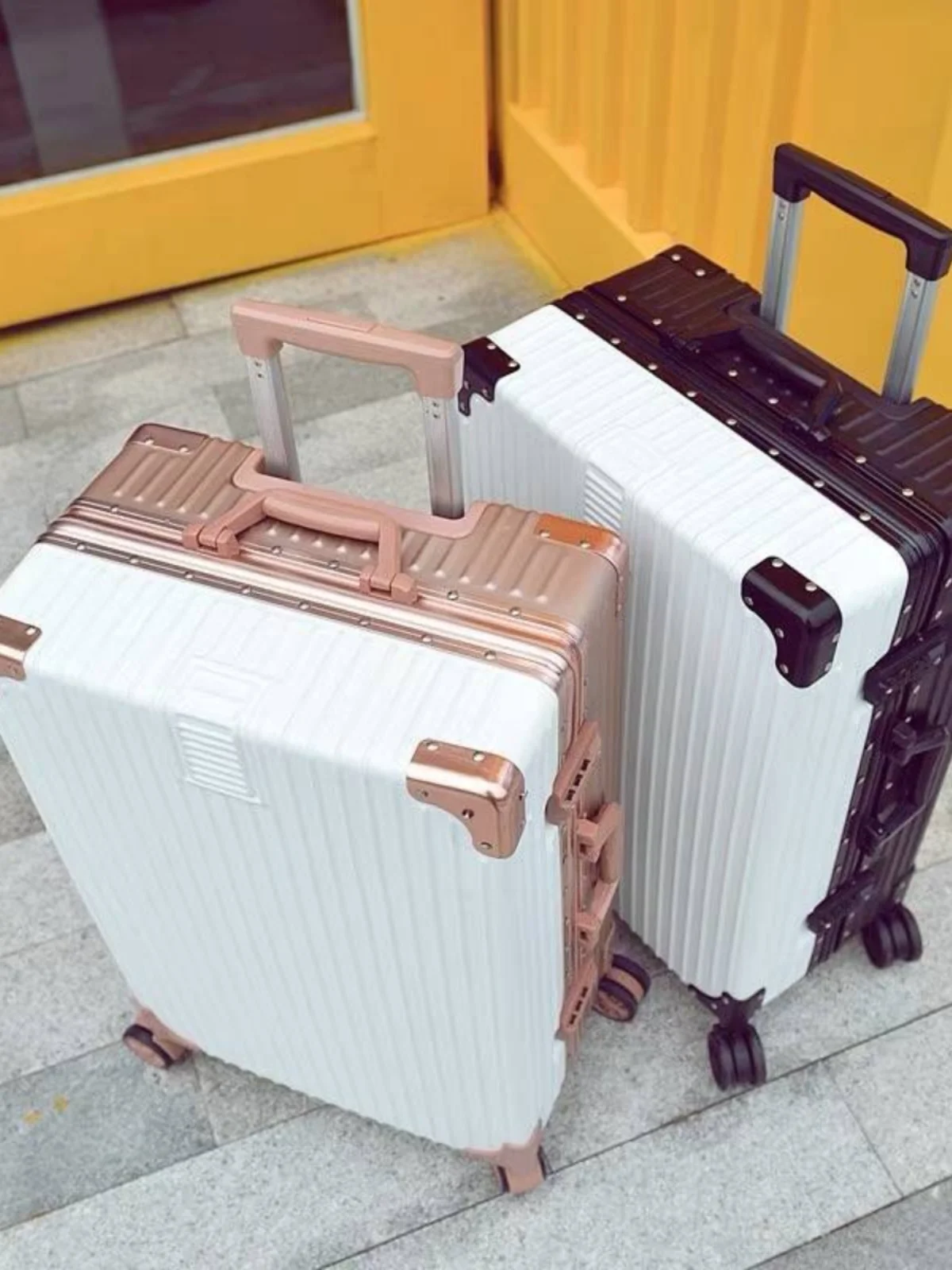 韓国スタイルの大容量旅行スーツケース男子学生プルロッド荷物ボックスアルミフレーム防水 ABS PC ファッショナブルなバッグ - TopDealBox