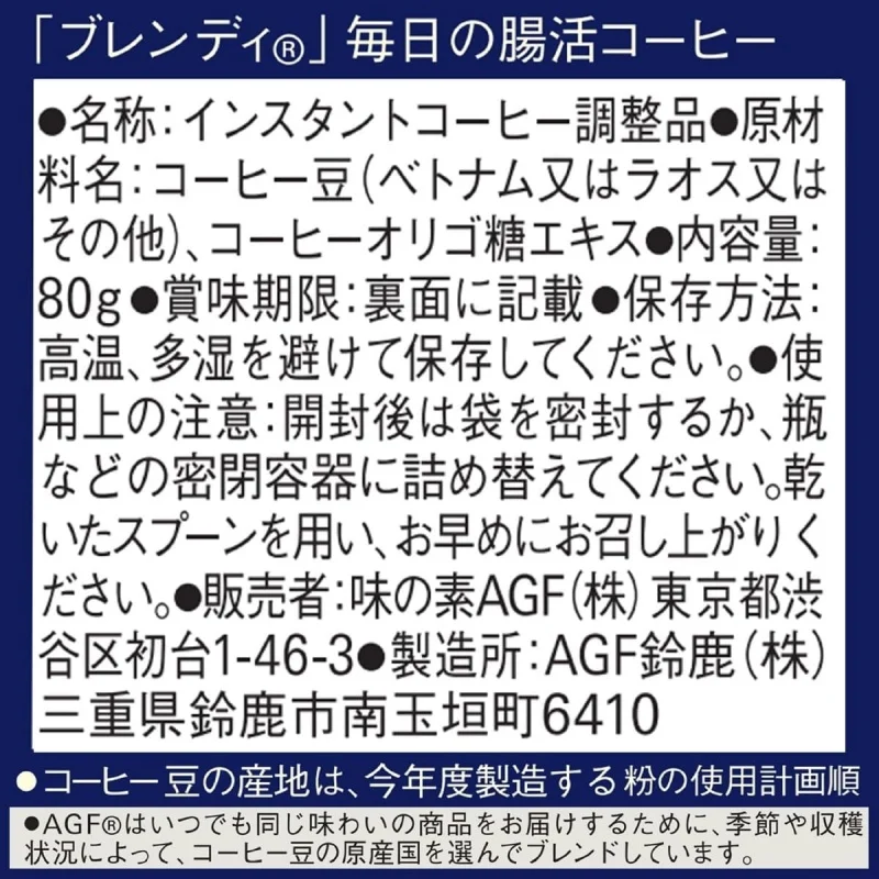 AGF ブレンディ デイリー腸内コーヒーバッグ 80g 【インスタントコーヒー】【水に溶ける】 送料無料 国内発送 - TopDealBox