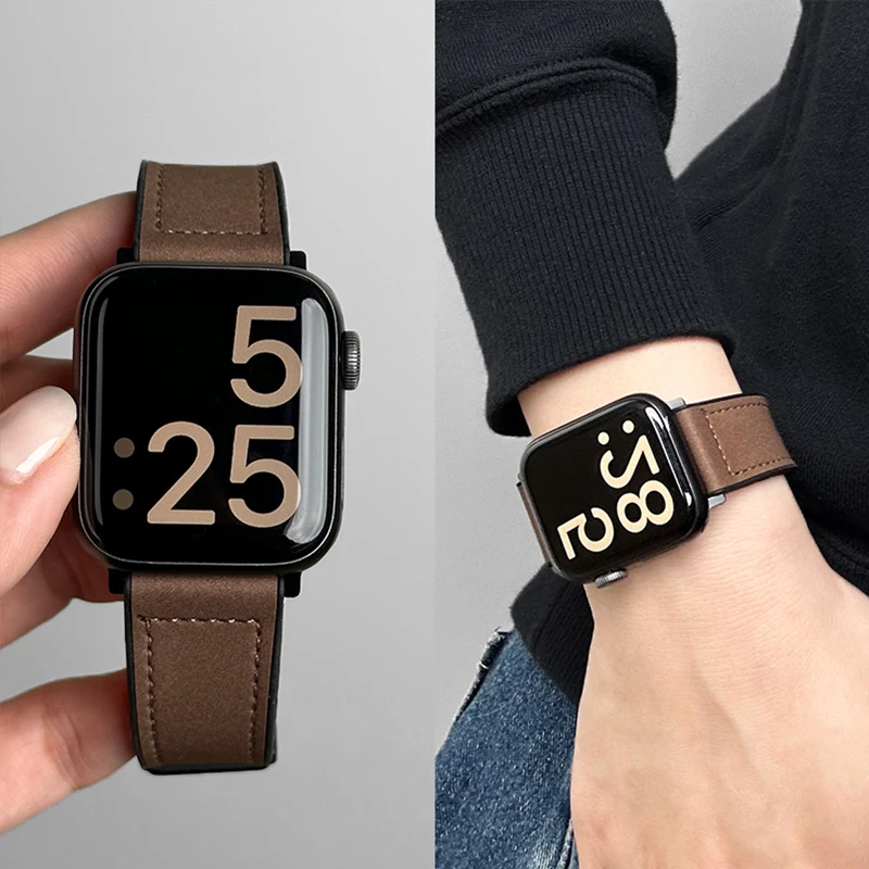 レザー+シリコンストラップ Apple Watch バンド ウルトラ 49mm 44mm 45mm 41mm 46mm 40mm 42mm マグネット式ブレスレット iWatch シリーズ 10 9 8 7 6対応 - TopDealBox