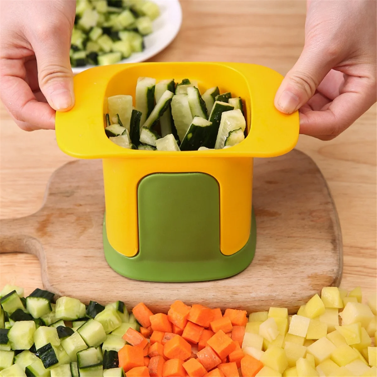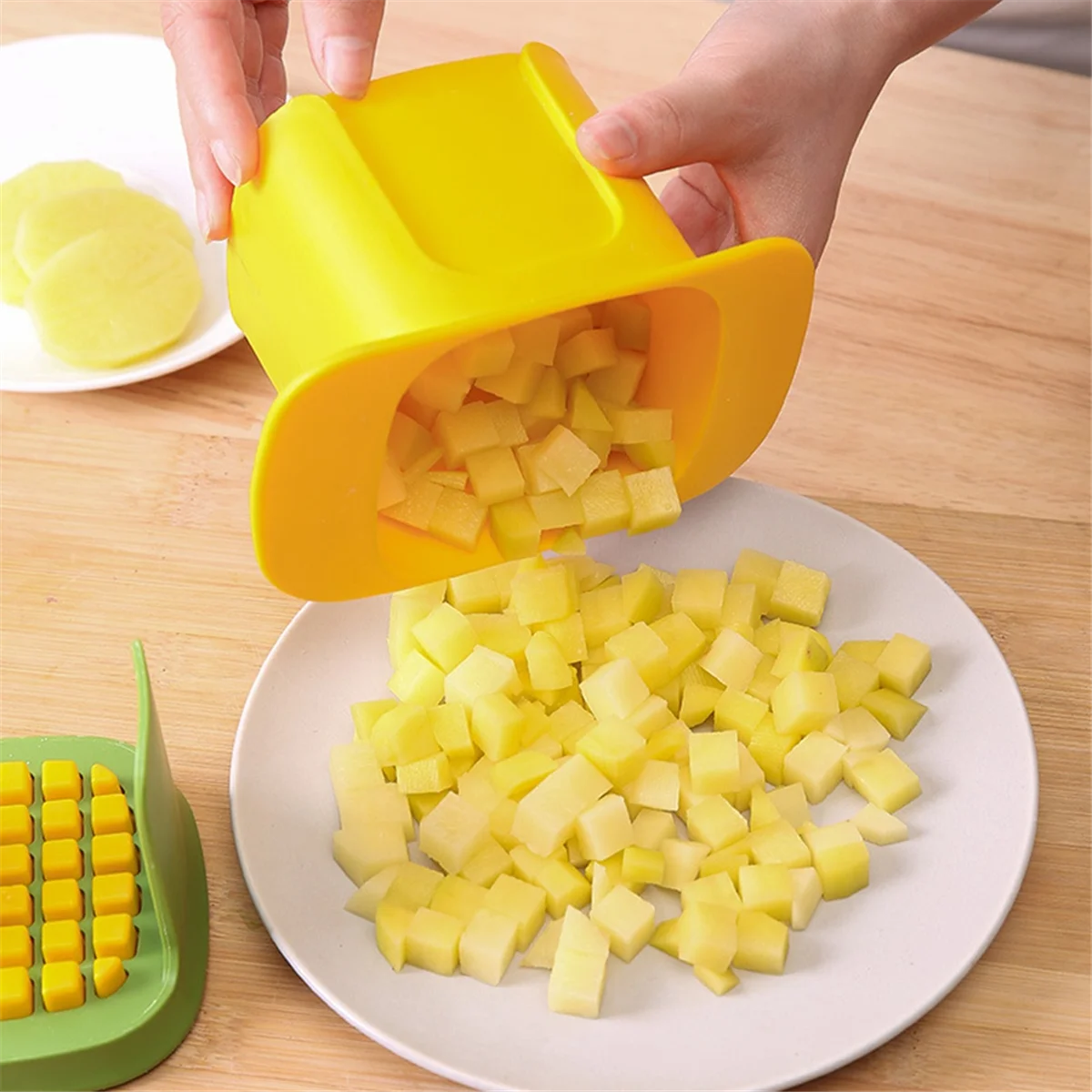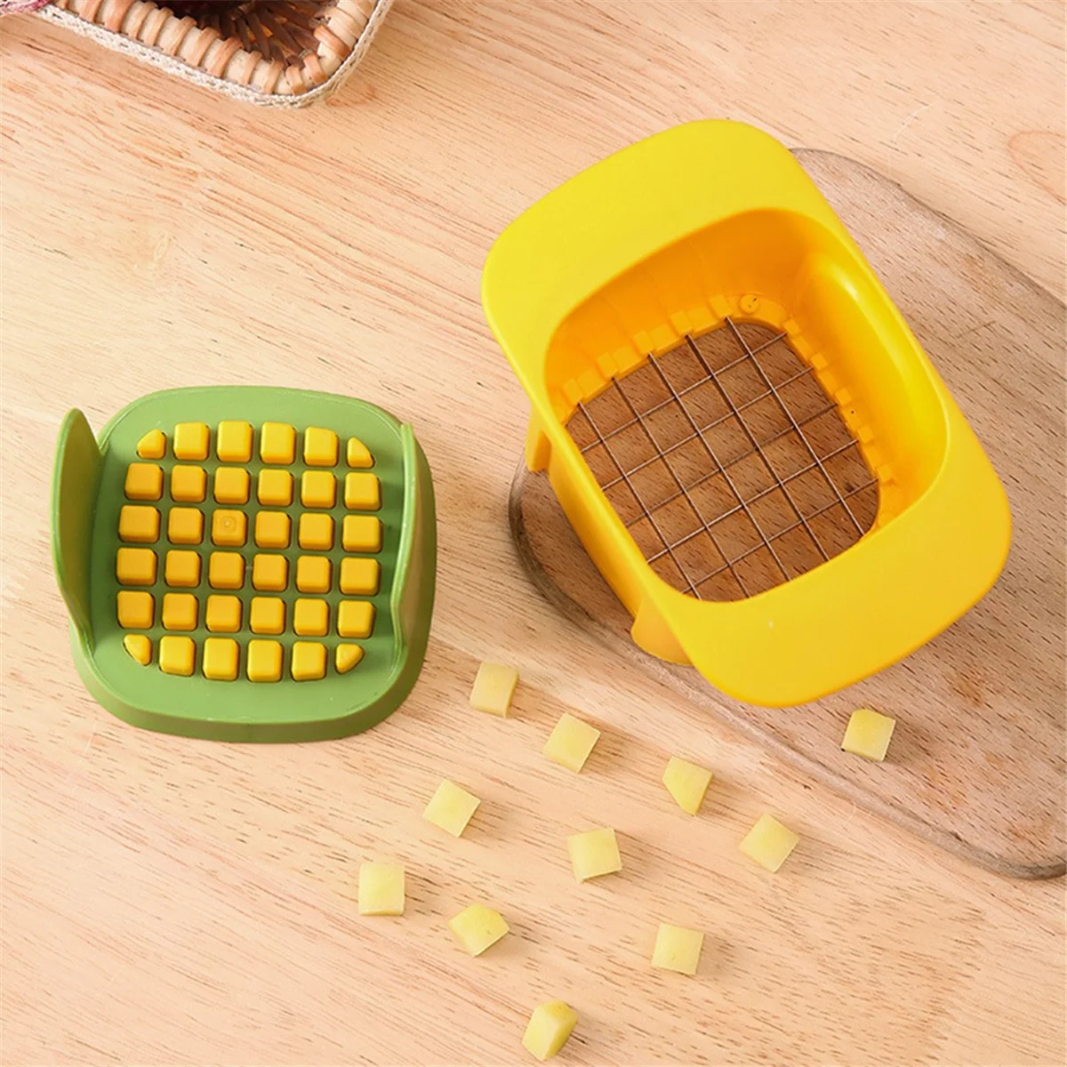 BABQ スライサー フルーツチョッパー チョッパーツール ニンジン フードチョッパー ポータブル ポテトチョッパー ハンドプレス ポテトカッター イエロー - TopDealBox