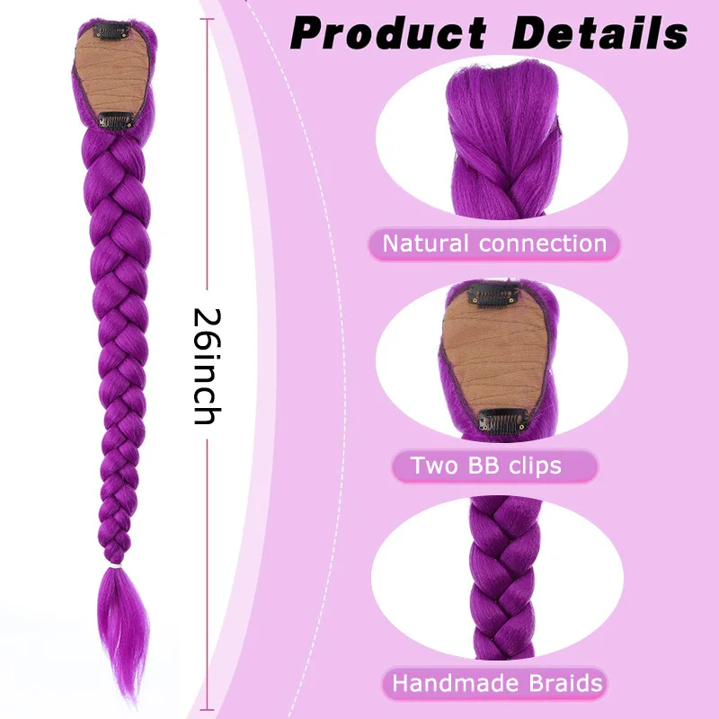 ソリッドパープル プレストレッチ合成毛髪 クロシェブレイズ BBクリップ付き 耐熱性 ハロウィン コスプレ 日常用