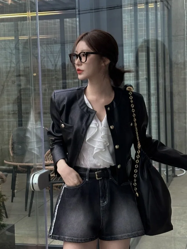 ♡Quick viewシックなショート丈レディースレザーベルベットジャケット、ルーズフィット、秋冬、シンプルで多用途、スリムデザイン、ユニークスタイル、トップスシャツ2260 JPYHot★★★★★1.0