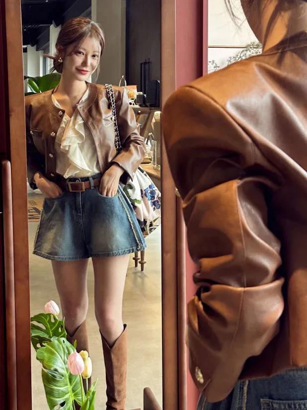 ♡Quick view秋スタイル シングルボタン レザー ベルベット ジャケット レディース 香港スタイル レトロ シック ルーズ 多用途 高級感 トレンディ トップス2919 JPYHot★★★★★★4.5