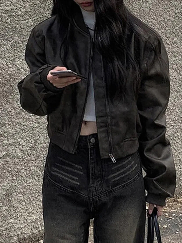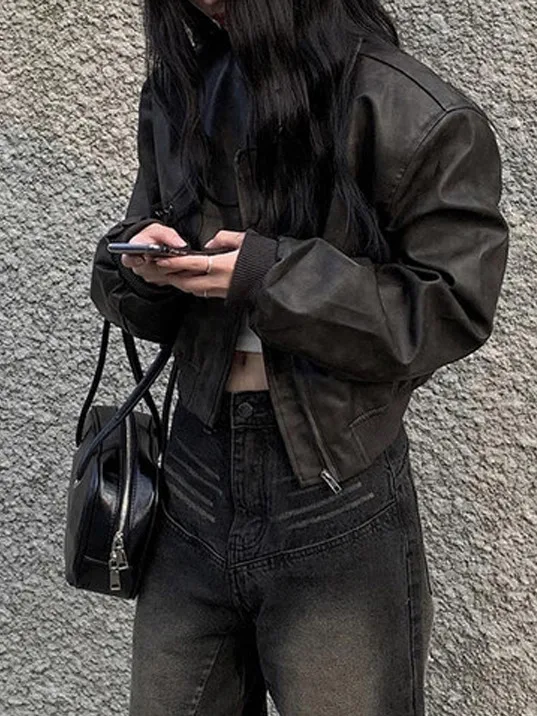 ♡Quick viewシックなショート丈レディースレザーベルベットジャケット、ルーズフィット、秋冬、シンプルで多用途、スリムデザイン、ユニークスタイル、トップスシャツ2260 JPYHot★★★★★1.0