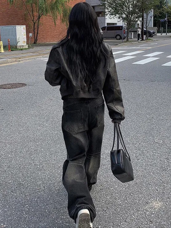 ♡Quick viewハイウエストワイドレッグストレートカットレトロデニムジーンズ女性用ルーズフィットカジュアルウォッシュドアウトスタイルプラスサイズ快適スリムフィット2534 JPYHot★★★★★★4.9