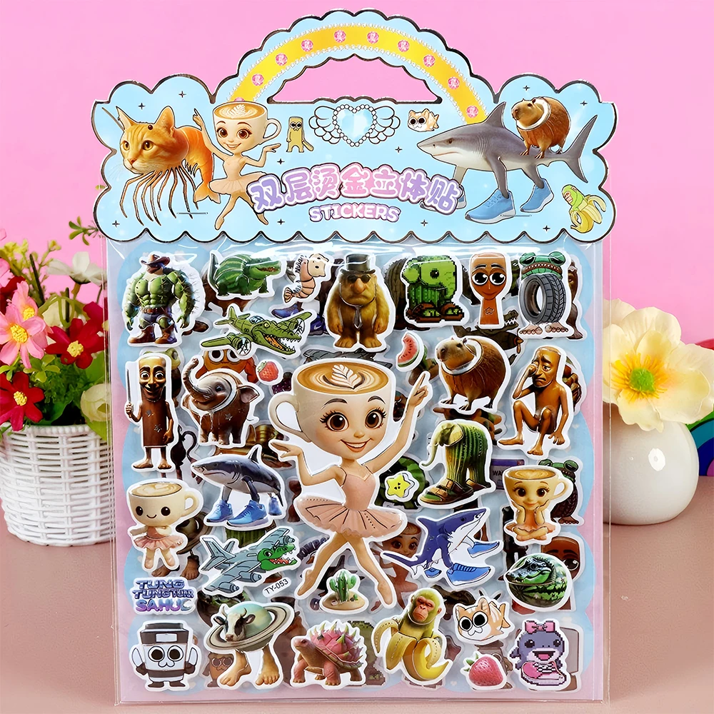 面白いイタリア Brainrot 漫画二層 3D バブルステッカー DIY ラップトップ電話かわいいタンタンタンサフールステッカーおもちゃ - TopDealBox