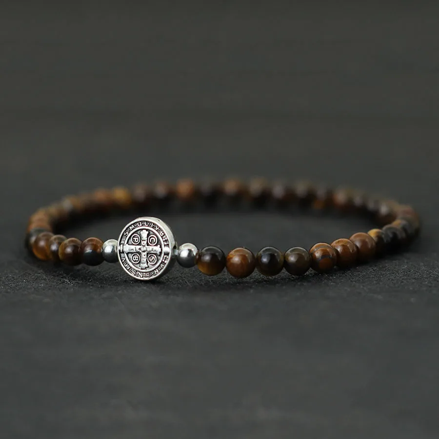 トレンディなイエスクロスビーズブレスレット男性アパレルアクセサリー天然石ストランドお守り Braslet ヒーリングレジャー Hombre ジュエリー - TopDealBox